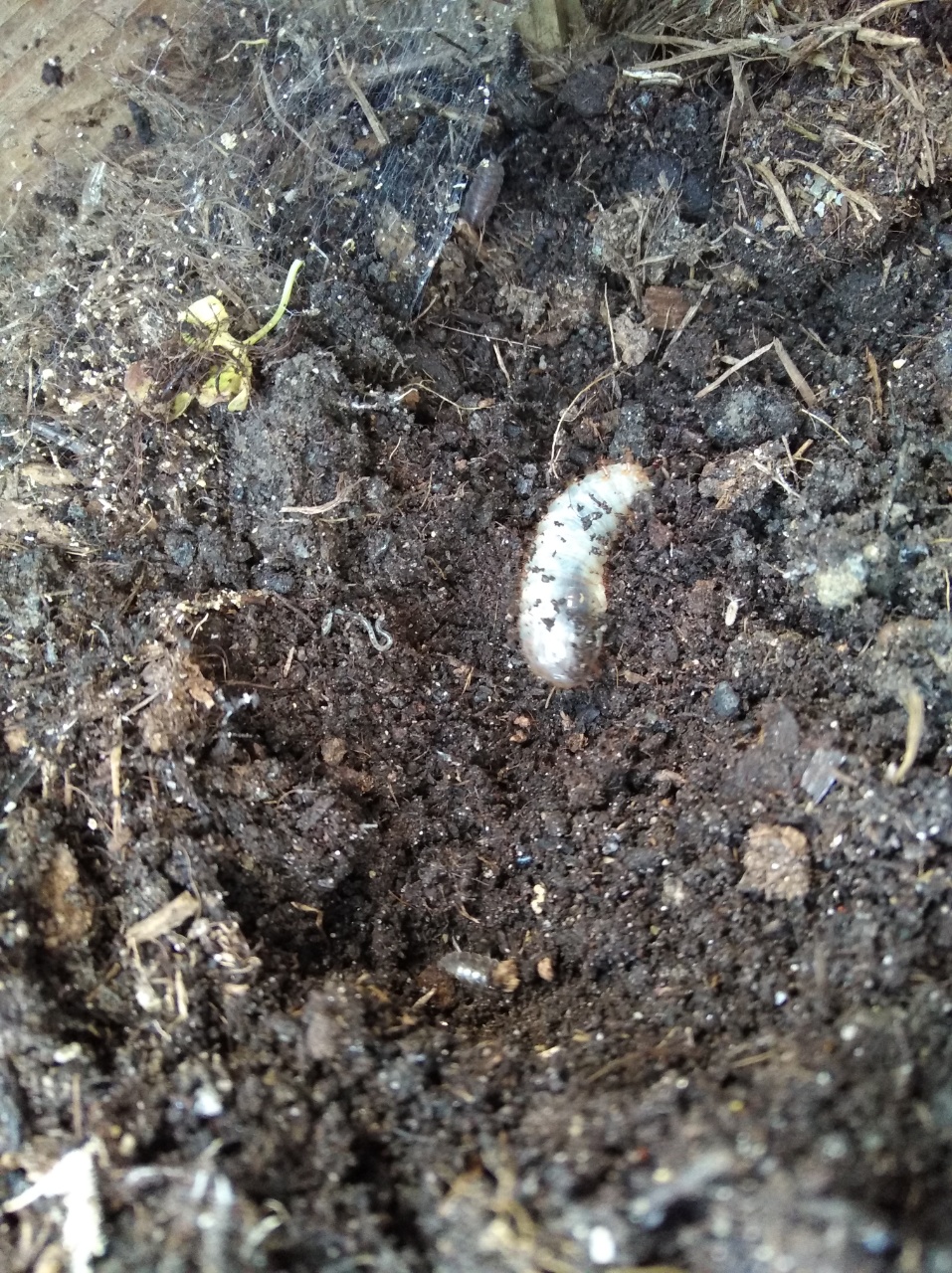 So ohne Größenangabe tippe ich einfach mal auf Rosenkäferlarve, die sind am häufigsten ^^