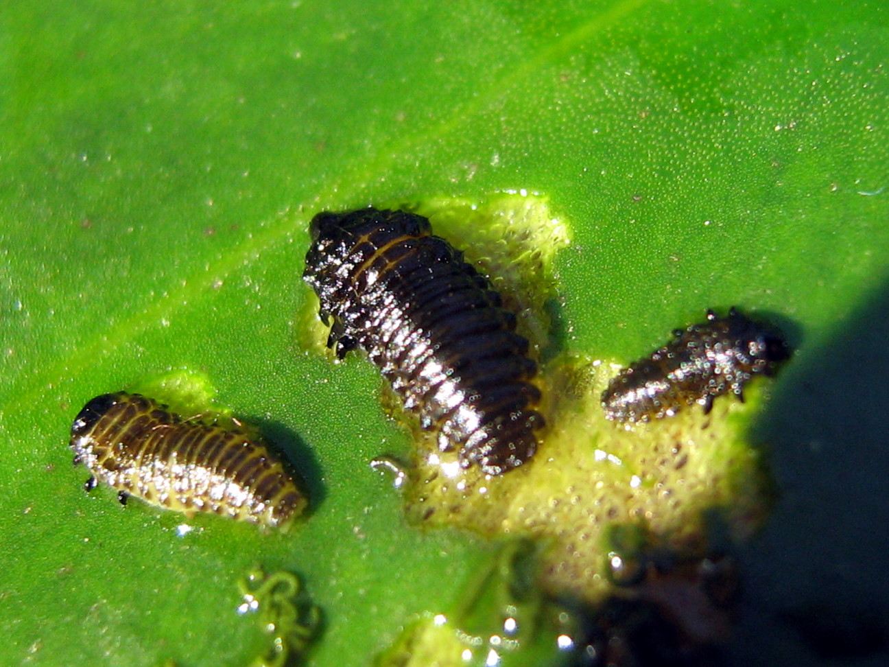 ich habe dieses Jahr einen Gast, ach was sage ich, viele Gäste, die mir hässliche Löchlein in meine Seerosenblätter fressen......der Seerosenzünsler ist es wohl nicht, habt Ihr noch eine Ahnung?