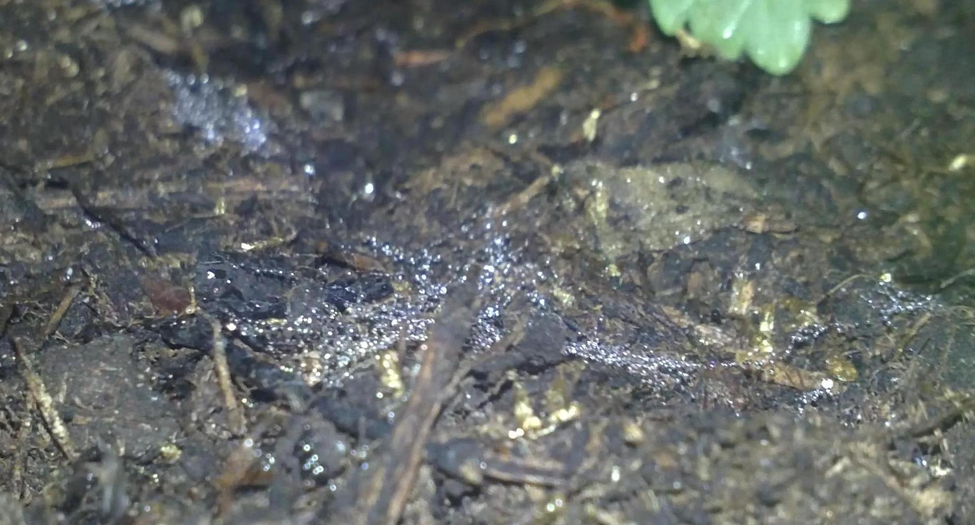 Außerdem habe ich nach dem absprühen der Pflanzen mit Wasser kleine feine Netzchen auf der Erde entdeckt - kann das von den Viechern kommen, oder ist das was anderes? Ich hooffe, man erkennt es am Foto, es sind die feinen Sprühtröpfchen, die an den Netzen hängen, deshalb habe ich die Netze überhaupt entdeckt.