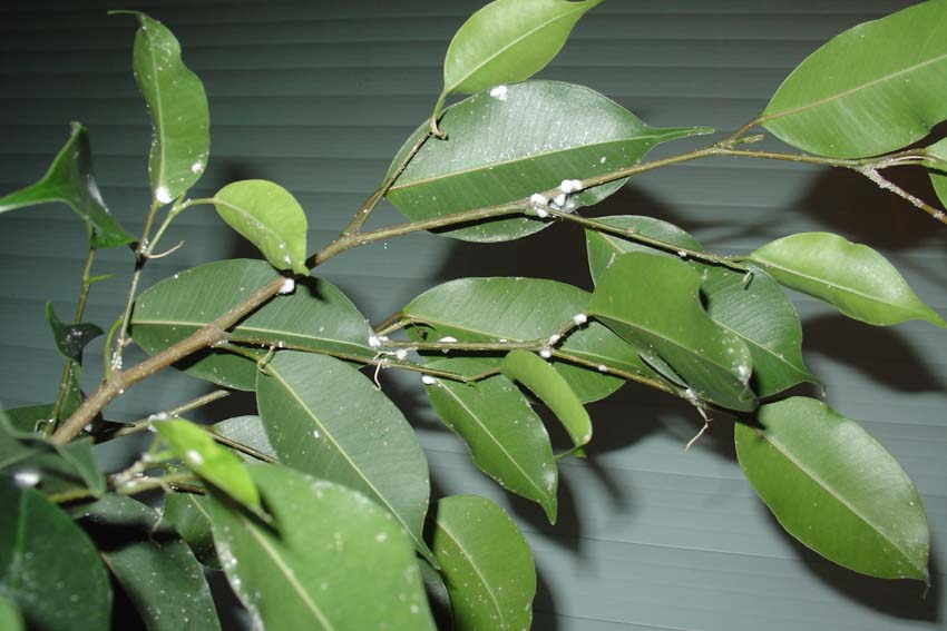 Ich habe seit geraumer Zeit weiße Flecken auf meinem Ficus (siehe Bild), die einfach nicht verschwinden. Ich habe schon versucht, sie abzuspritzen bzw. händisch zu entfernen. Auch mit Neemöl habe ich die Pflanze schon bearbeitet - leider ohne Erfolg, die Schädlinge kommen immer wieder. Kann mir jemand sagen, um welche Schädlinge es sich handelt und wie man sie bekämpft? Ich hatte schon Wollläuse in Verdacht, kann aber selbst mit der Lupe keine Tiere erkennen.