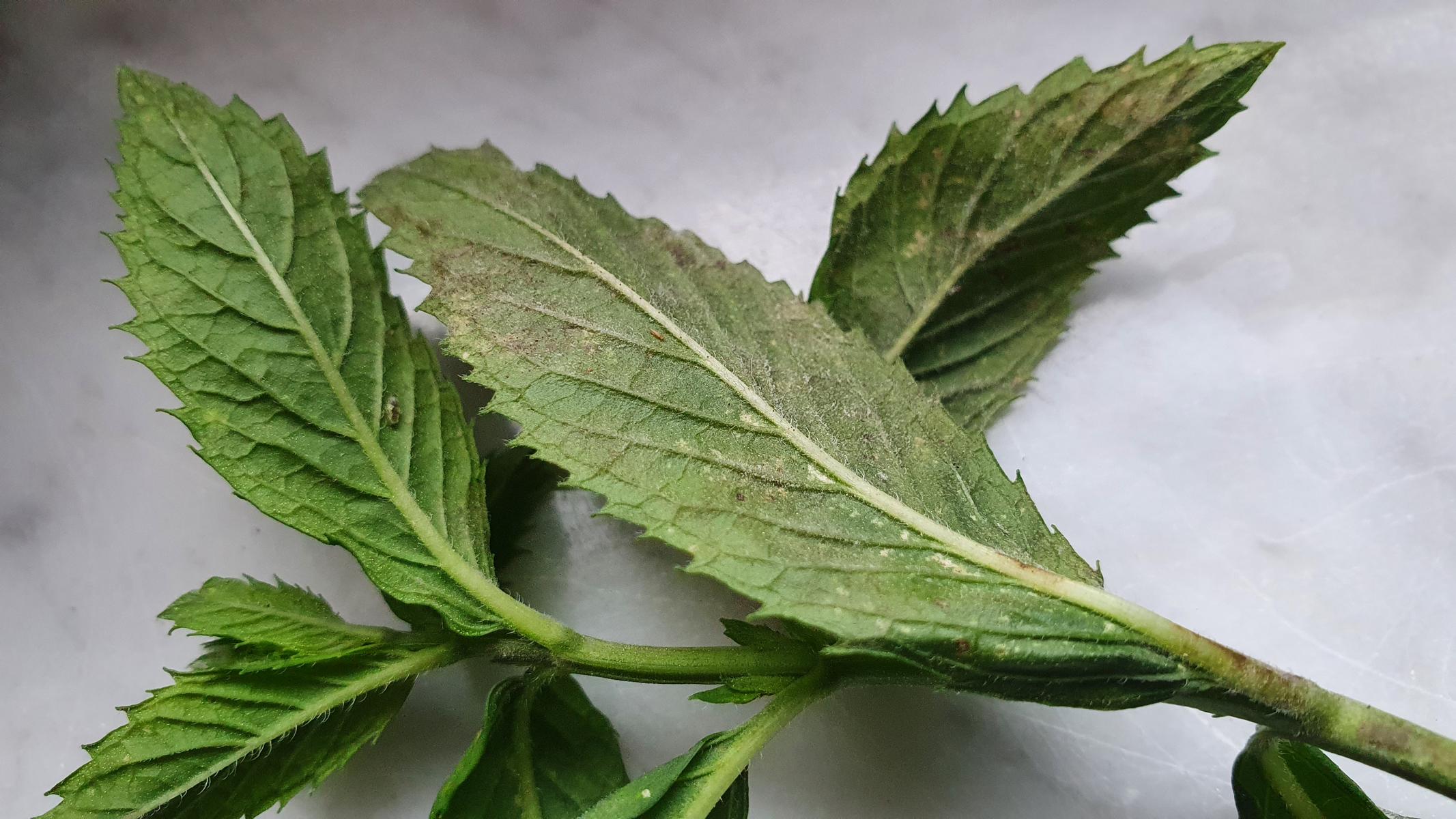 ich musste vorhin beim Abschnippeln eines Stücks Minze (Mojito-Minze, falls das von Bedeutung ist) feststellen, dass die Pflanze doch ein wenig seltsam aussieht.