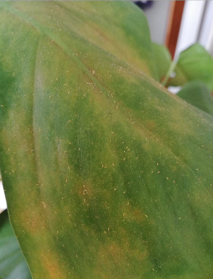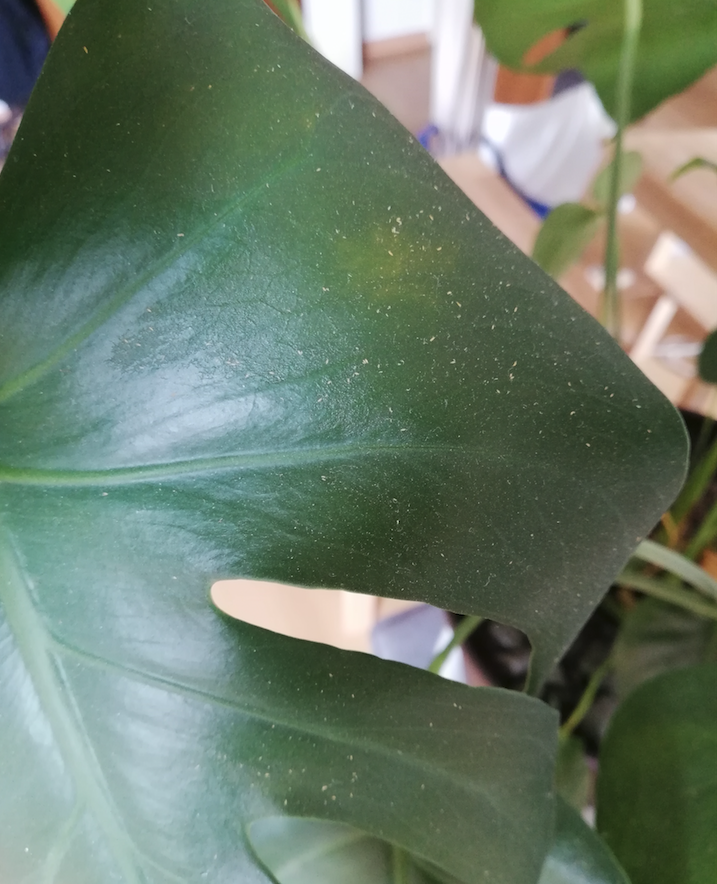 Nun aber zu meinem egentlich (NEUEN) Problem: Meine Monsterra hat hier ein paar schöne Monate verbracht, ist prächtig gewachsen und letzte Woche musste ich mit ansehen, wie zwei der Blätter langsam anfingen zu vergilben. Ich habe mir erstmal nichts weiter dabei gedacht, bis ich genauer hingesehen habe. Auf mittlerweile leider fast allen(!!!! ) Blättern sitzen kleine braune... irgendwas. Es sieht aus wie Pulver. Es bewegt sich nicht. Je mehr davon auf einem Blatt sind, desto gelber wird es und geht langsam ein. Was ist das nur?! Ich habe Bilder davon gemacht...