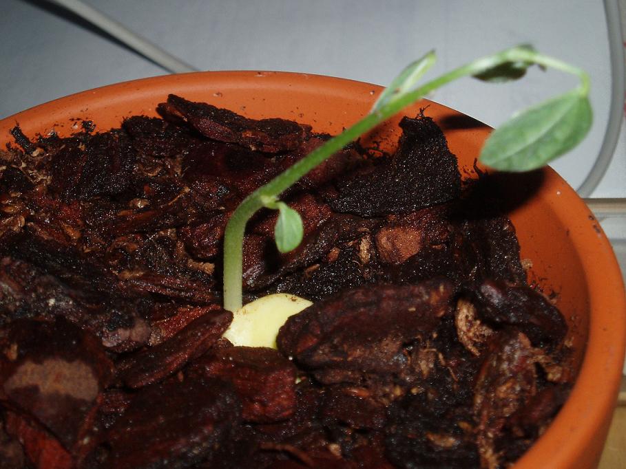 heute war der sprösslig etwa 6 cm gross. das ist gross genug, um zu pikieren. gesagt, getan. also pflanz ich das teil um. diesmal habe ich meine orichideenerde mit normaler blumenerde gemischt.