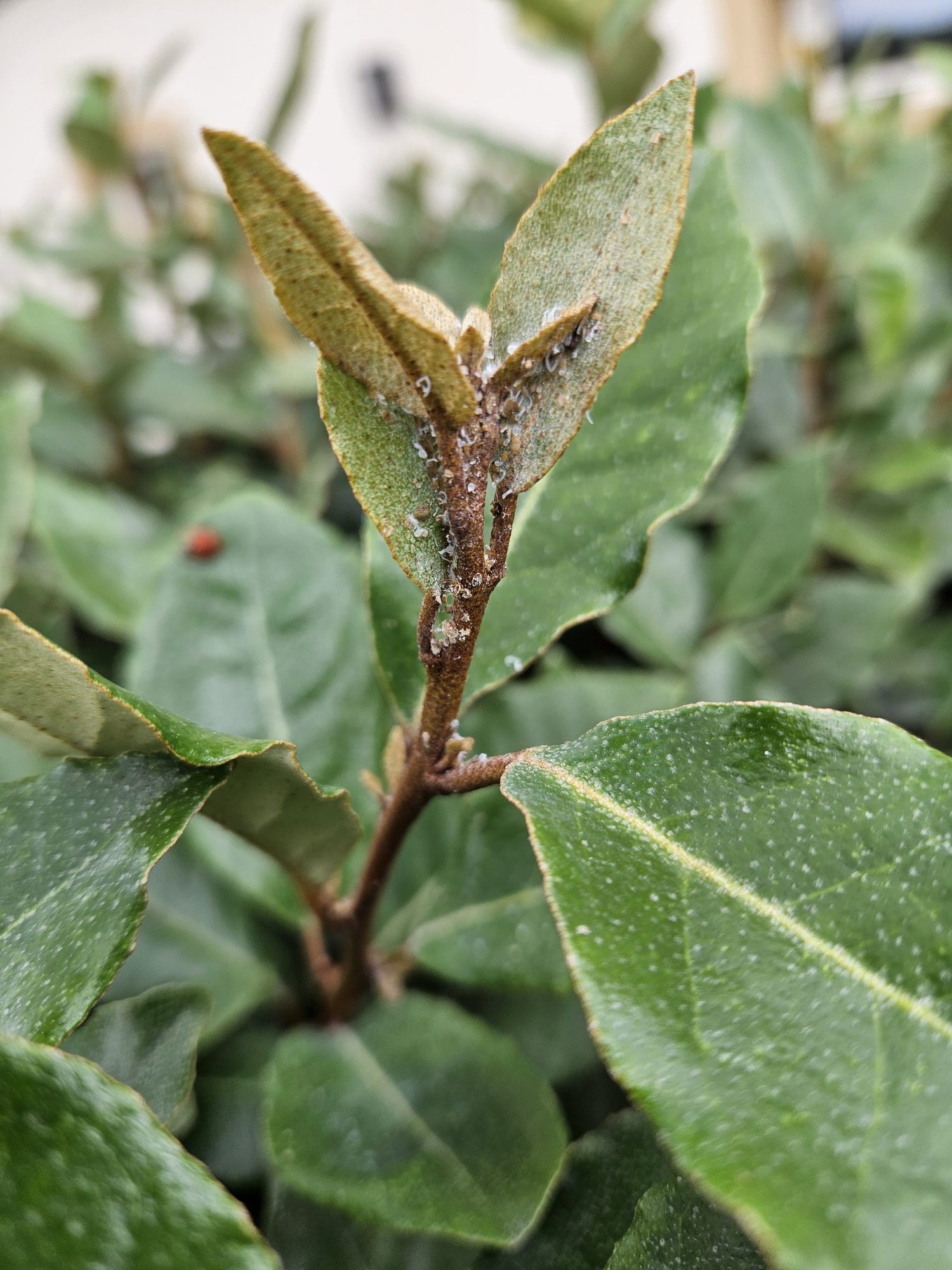 Hat hier jemand Erfahrung, mit welchen Maßnahmen man den Befall eliminieren kann und wie man den schwarzen Belag (vermutlich Rußtaupilz) auf der Hecke entfernt? Inzwischen verkahlen einige Ölweiden schon im unteren Bereich, da sie dort viele Blätter verloren haben. Ich würde nun die Hecke wieder zurückschneiden und den Abschnitt und die abgeworfenen Blätter entsorgen.