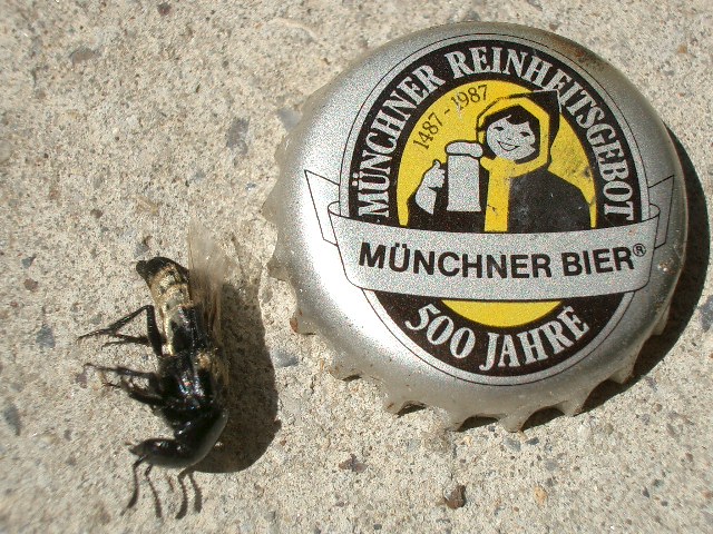 Der Schädling tritt in großen Gruppen auf (mehere hundert), ist ca. 10-15mm lang (als Größenvergleich dient ein Bierverschluss), hat sechs Beine und Flügel.