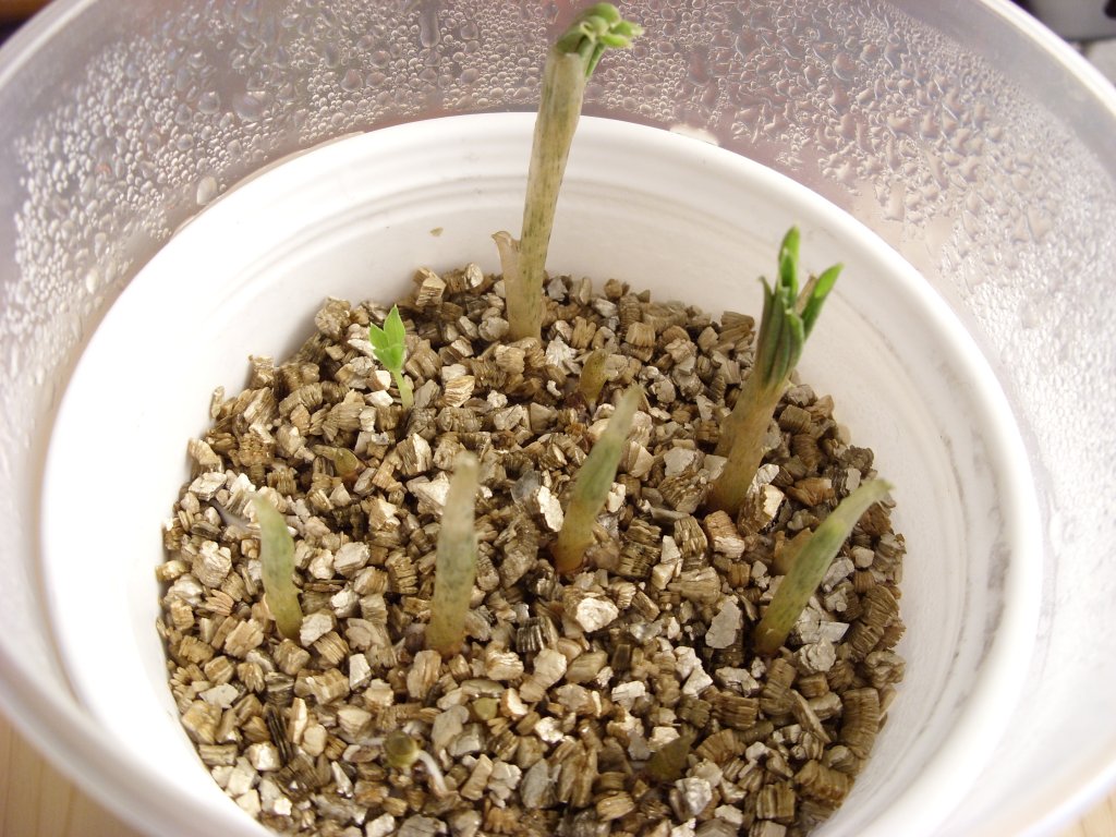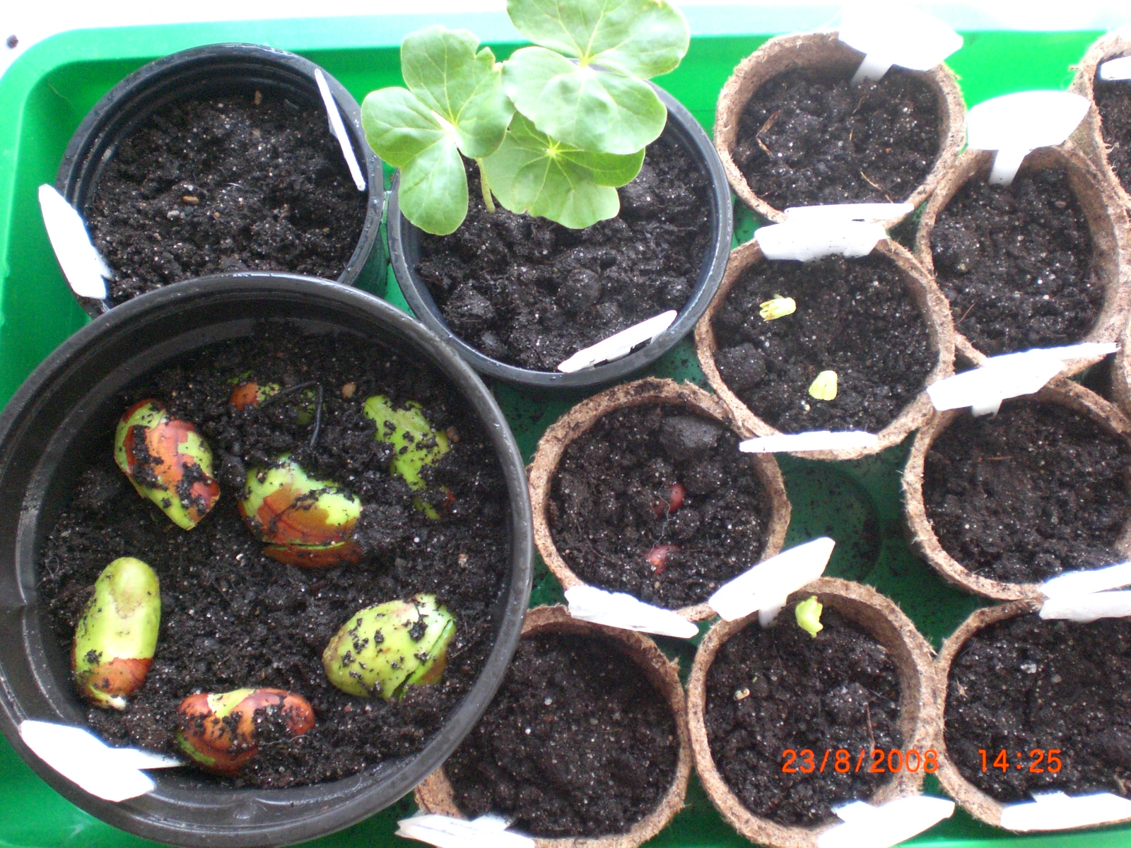 Gepflanzt habe ich am 16.08., die Baumwolle hab ich mit 5,5cm am 20.08. und die Hibis mit etwa 1-2cm gestern entdeckt. Jack Fruit wurde heute enttarnt.