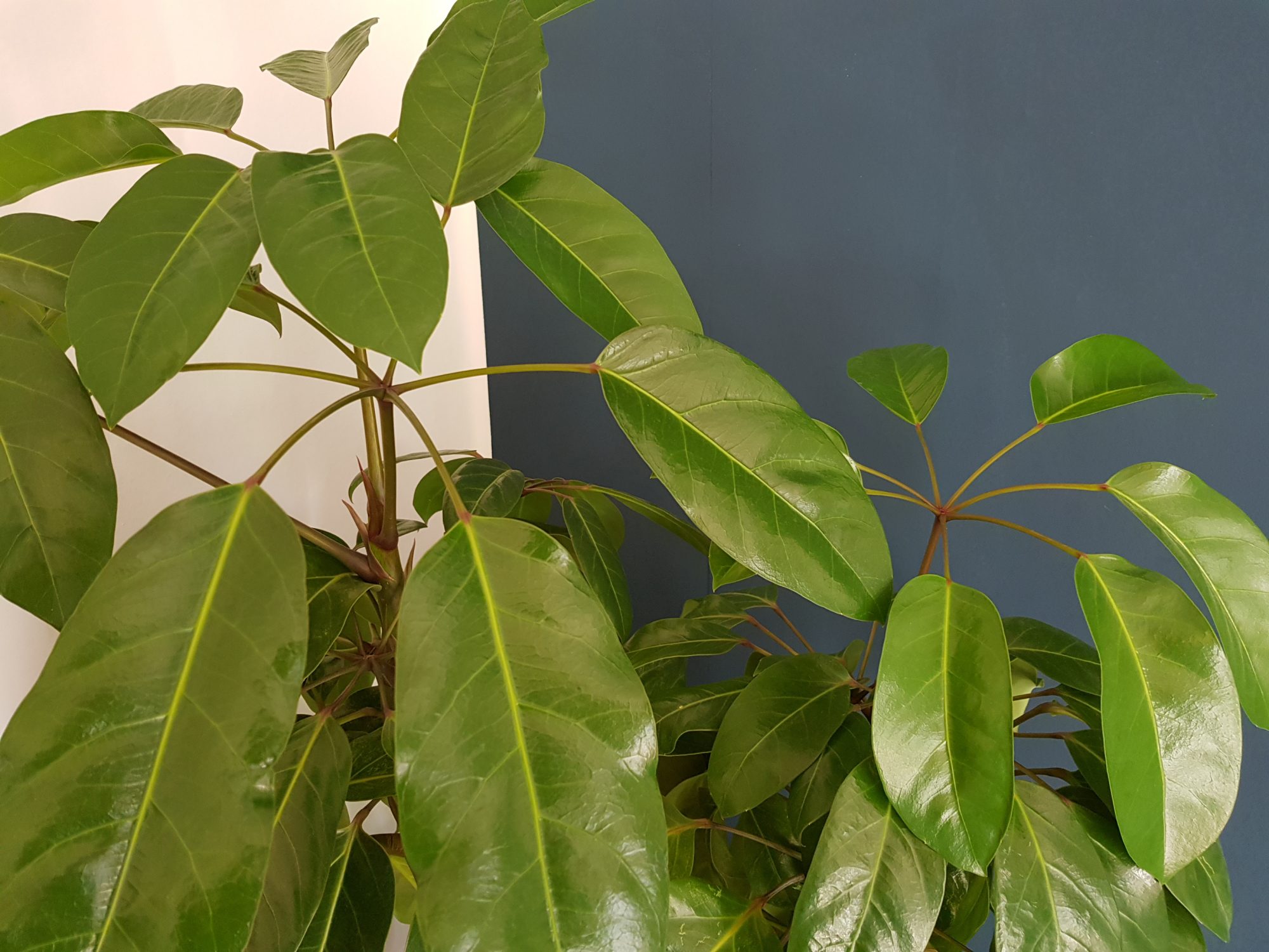 Auch würde ich sie heller stellen. Schefflera sind Bäume und vertragen mMn auch Sonne. Meine steht im Sommer draußen aber schattig.