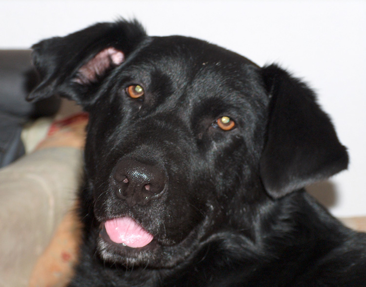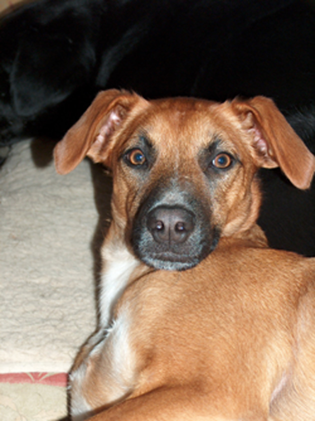 Die "Schmale" ist jetzt grade 4 geworden und stammt aus einer Tötungsstation auf Lanzerote. Sie wurde auch als Weggefährte für die Große angeschafft, weil die Leute immer die Strassenseite wechselten ( "Großer-Schwarzer-Hund-Syndrom" )