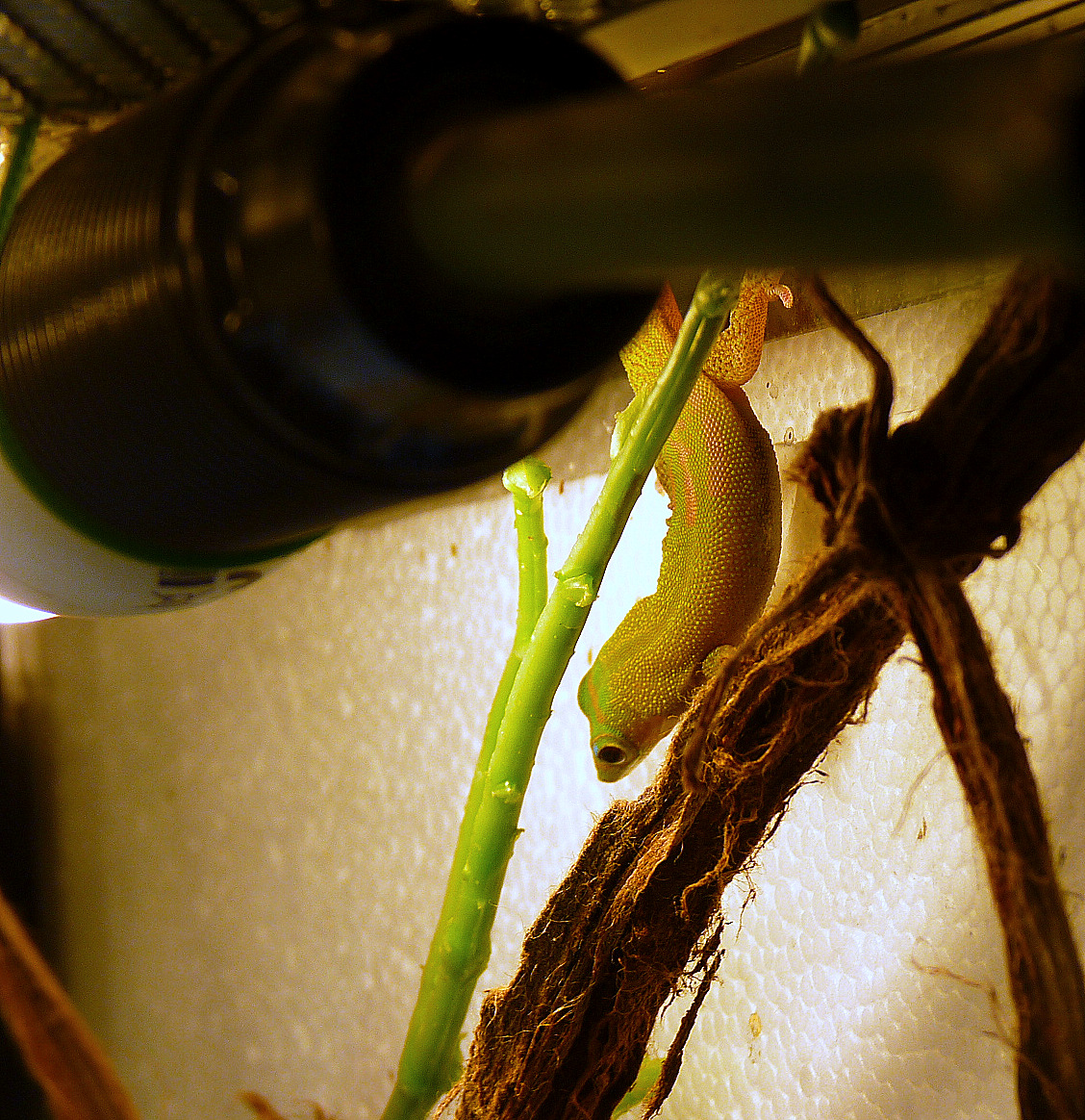 Hui, ein Gecko Ich liebe diese Tierchen, seit ich sie als Kind in Südafrika-Urlauben immer an den Wänden im und ums Haus herumflitzen sah. Aber die Haltung wäre mir mit all den Extralampen, Wärmematte und was es sonst noch so braucht einfach zu aufwändig.