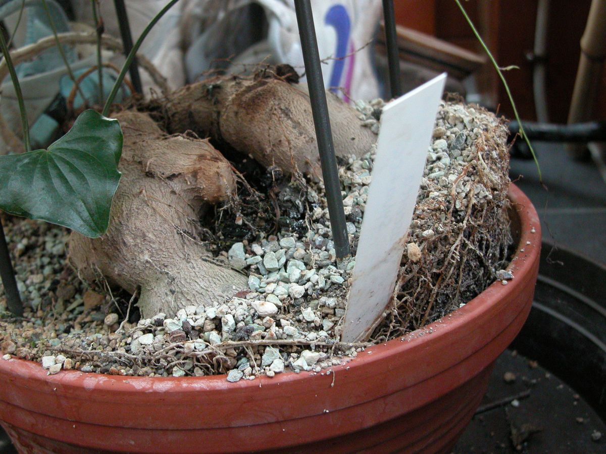 Meine Sylvatica ist jetzt 1 3/4 Jahre alt seit der Aussaat und hat diesen Sommer wieder wahnsinnig zugelegt. Erst hat sie ein kleineres Gitter berankt, dann habe ich sie an einem großen hochranken lassen, wobei sie aber keine Blätter gemacht hat, bis sie nicht mehr höher hinaufwachsen konnte, erst dann kamen wieder welche. Und zur Zeit scheint sie unten an der Knolle kräftig zuzulegen, denn sie hebt sich aus der Schale heraus, in die ich sie im Frühling gesetzt habe! Ich warte jetzt, bis sie einzieht, dann muss ich mal nach einem passenden Gefäß mit mindestens 25 cm Durchmesser suchen, das auch mehr Tiefe hat als diese Schale....