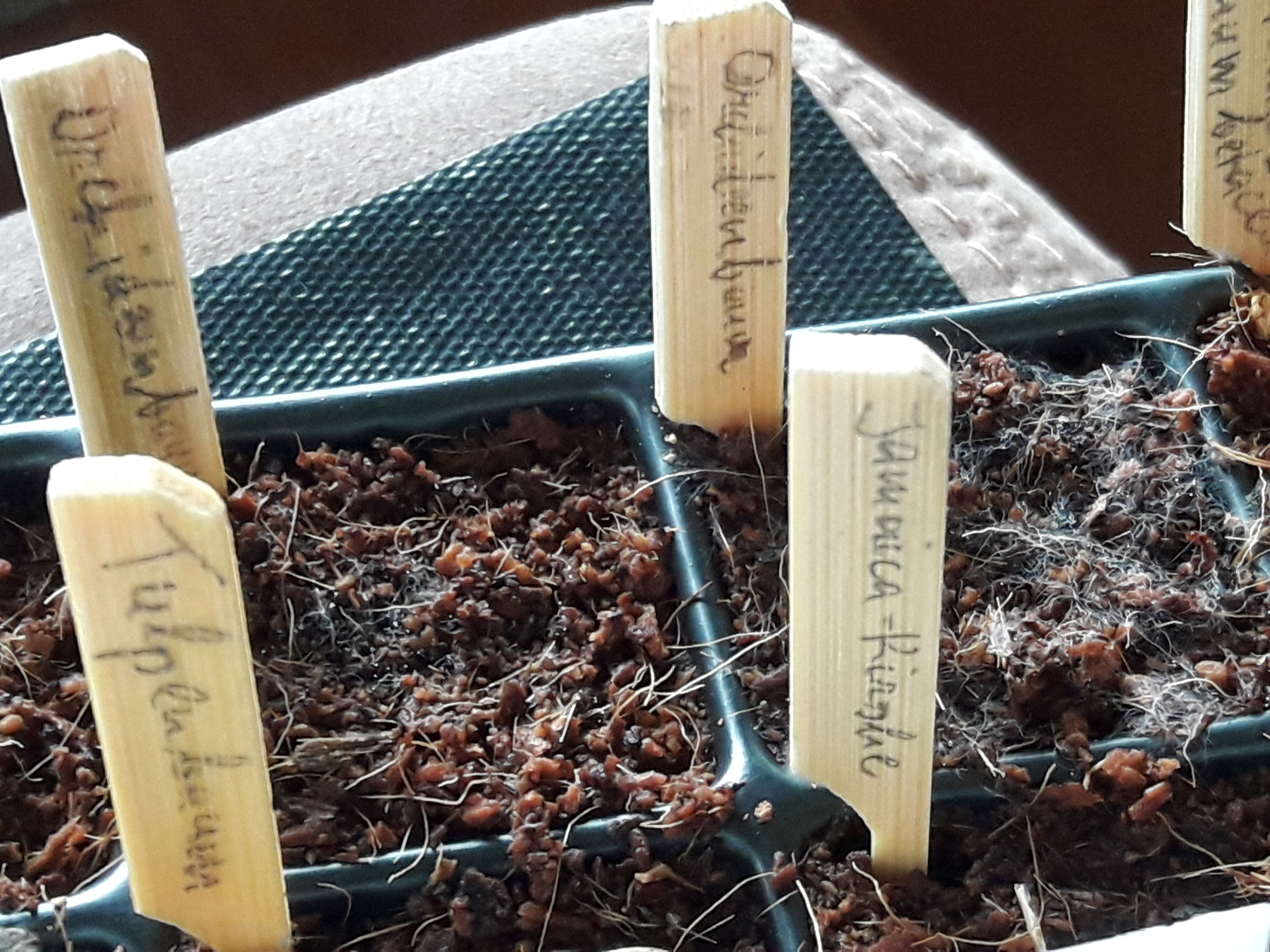 Jedenfalls sind die ersten Samen nun seit 2 Tagen in der Anzuchtschale auf der Heizmatte und haben schön warm bei ca. 21 bis 23 Grad.