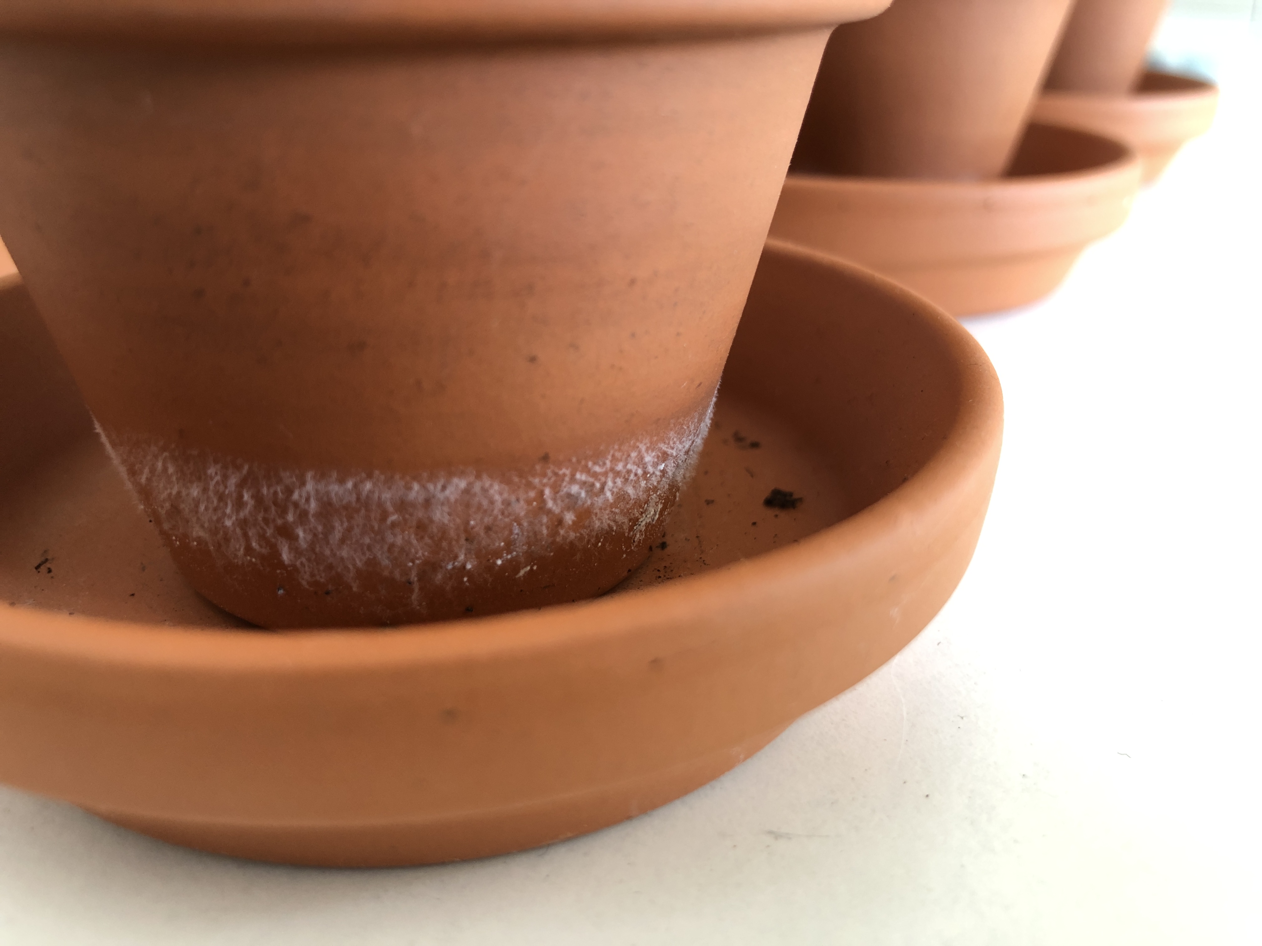 Kann daie Schimmelbildung daran liegen, dass die Pflanzen nun in einem Eck stehen und durch das häufigere Gießen der Rand nicht trocknen konnte? Was mich wundert, ist dass der Tontopf und nicht etwa die Erde schimmelt.
