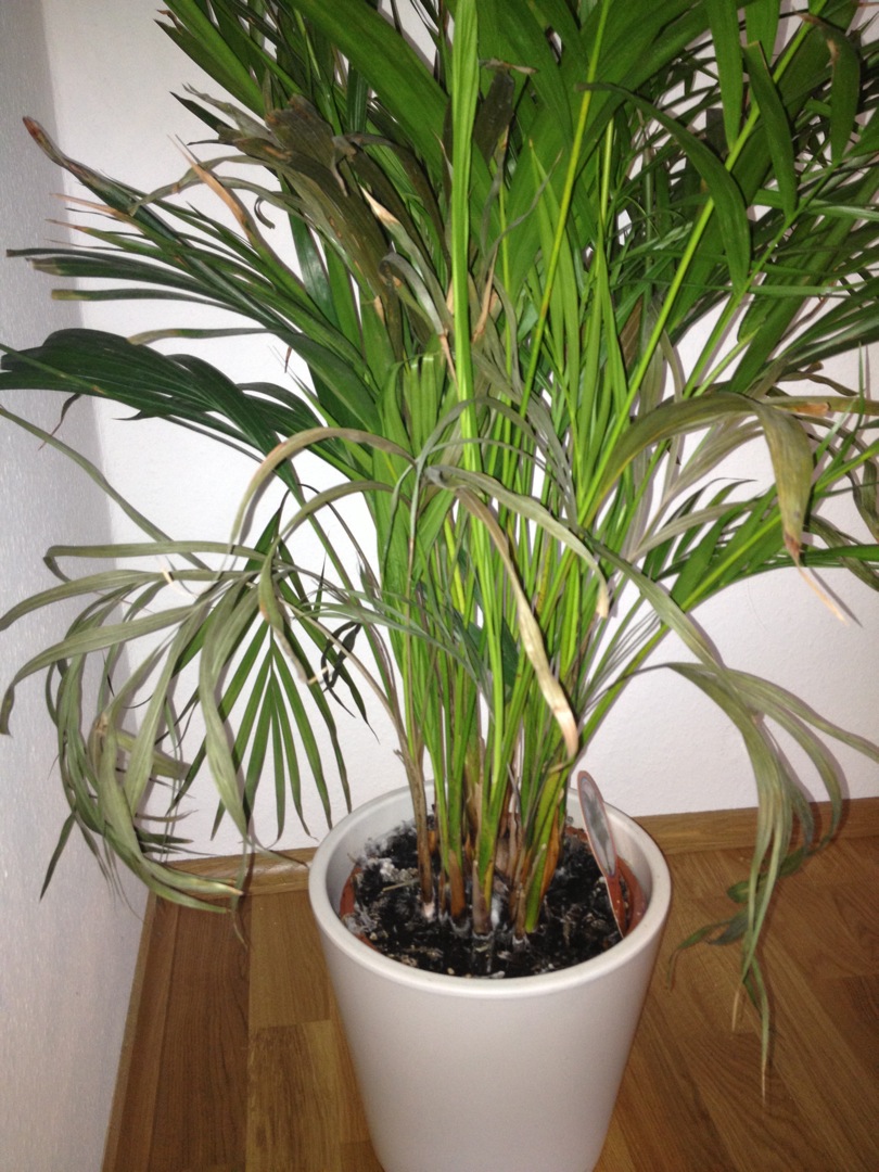 Die Palme steht im Wohn- bzw. Esszimmer. Wurde das letzte mal vor einer Woche gegossen und davor 2 Wochen garnicht.
