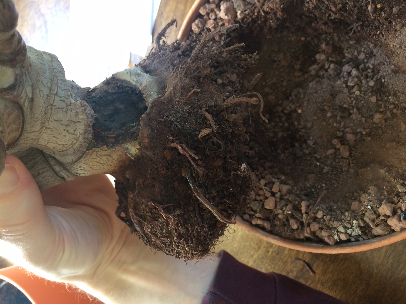 Hierbei habe ich festgestellt, dass auch die Wurzeln massiv am gammeln waren und es keine Hoffnung mehr für den Baum gibt. Deshalb habe ich mich kurz informiert und gelesen, dass Ableger einfach zu erstellen sind und begonnen den Baum von allen kranken gammelnden Teilen zu befreien - bzw. alle gesunden Äste von dem Baum abzuschneiden und mit Ablegern neu anzufangen.