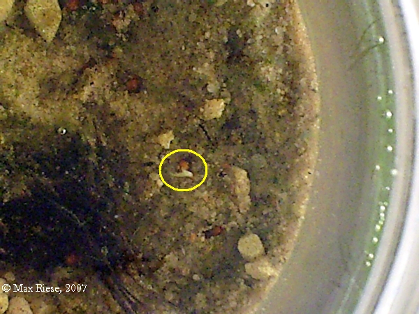 Die Samen werden dann einfach auf die Wasseroberfläche gestreut. Nach 1 bis 3 Tagen gehen diese Samen dann unter. Man drückt die Samen dann ganz leicht mit einem Zahnstocher o.ä. in den Sand, bedeckt die aber nicht damit.