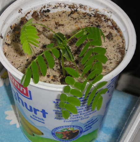 Das ist der oben erwaehnte im Balkonkasten "ueberwinterte" Samen vom letzten Jahr Jetzt bin ich mir ziemlich sicher, dass es ein Schlafbaum ist