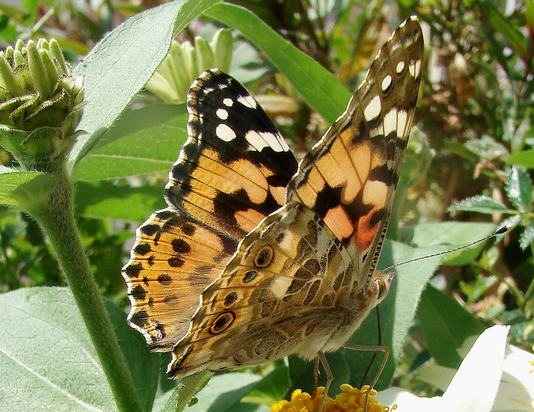 gestern auf'm balkon hat der distelfalter an den zinnien genascht. & aus irgendeinem grund nur an der weissen