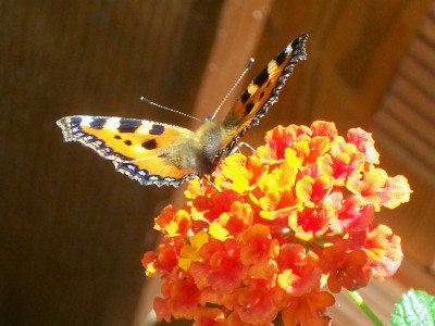 Aber vor einer Stunde habe ich einen Pfauenauge im Garten gehabt. Er hat sich leider nicht hingesetzt.