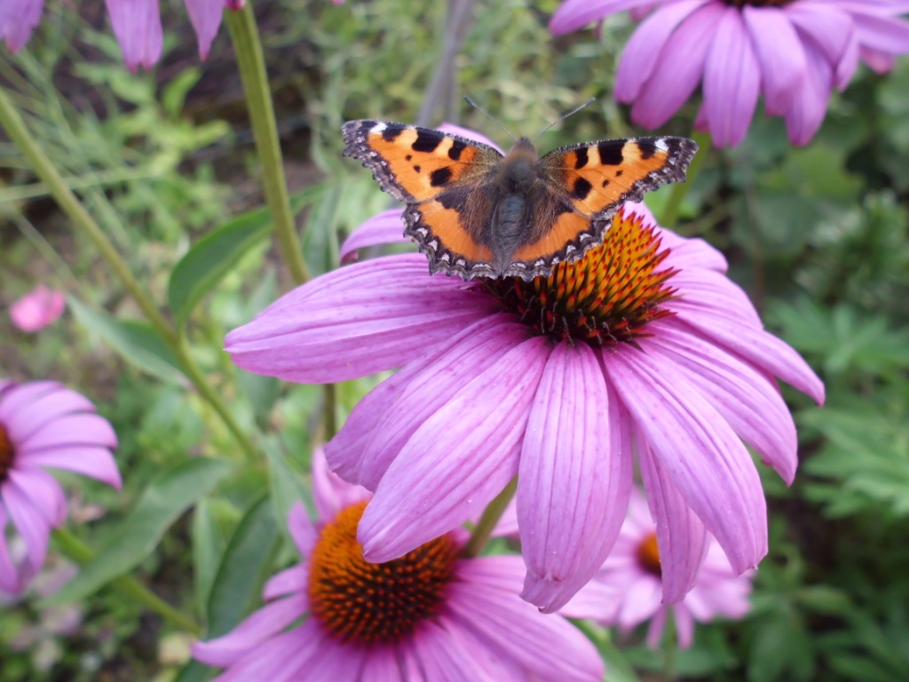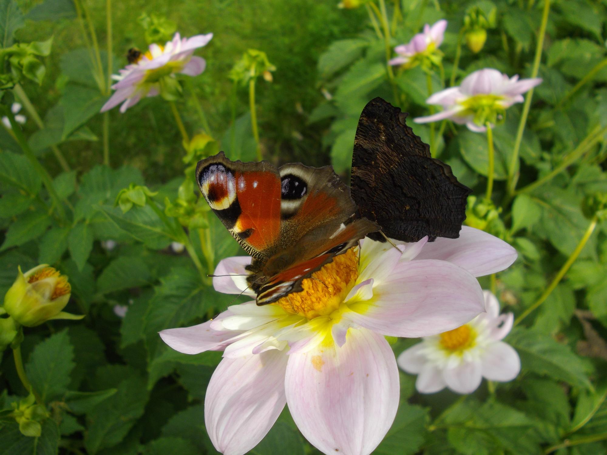 Heute habe ich auch ein Pfauenauge Und noch ein paar andere. Nachdem ich den ganzen Sommer traurig war, dass in meinem Garten kaum Schmetterlinge waren, hatte ich heute reichlich "Besuch". Anscheinend sind sie bei mir eben später Besonders Pfauenauge und Admiral tauchen ja besonders im Spätsommer auf, wenn es Fallobst gibt, daran naschen sie gerne. Dann braucht man "nur" noch viiiiel Geduld, sie mal stillsitzend UND aufgeklappt mit der Kamera zu erwischen