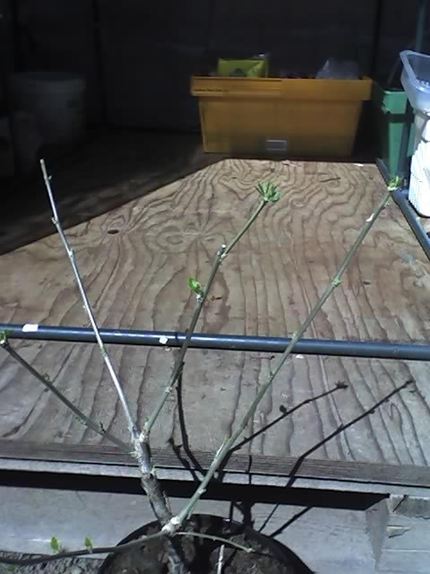 mein Hibiskus (Mein Bericht vom 22. Juli), den ich für nix bei L. erstanden habe und der auf das erste Gießwasser mit totalem Blattabwurf reagiert hat, treibt nun schön aus und hat sogar an den beiden rechten Zweigen Blütenknospen angesetzt. Freu mich schon, habe nämlich keine Ahnung, welche Farbe dabei herauskommt.