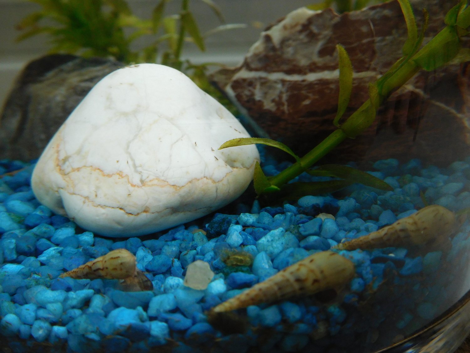 ich hab im herbst das kindergartenaquarium umgeräumt und kies entsorgt und so. dabei waren in dem kies unendlich viele kleine turmdeckelschnecken, denen ich mit einigen Handvoll kies und ein paar pflanzen in einer Vase hier bei mir auf dem Fenstersims ein neues zuhause gegebn habe. also nicht allen 3.000.000 schnecken, aber ein paar.