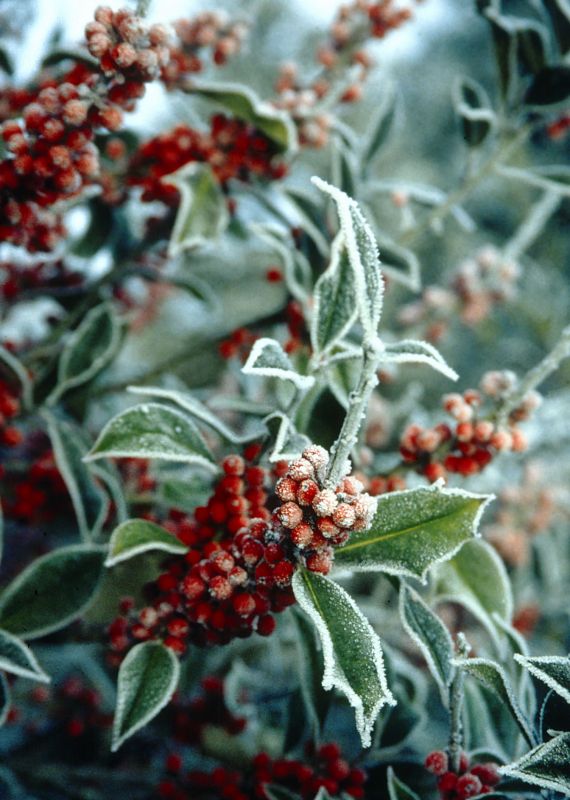 Stechpalmen sind immergrüne Laubgehölze, die absolut winterfest sind, wenig Ansprüche an den Standort stellen und sich rund ums Haus für verschiedenste Zwecke eignen. Sie können dichte, schützende Hecken bilden oder als markante Solitärgehölze Akzente setzen. Die meisten haben kräftige, dunkelgrüne Blätter mit Dornen an den Rändern, es gibt aber auch einige mit goldgelben oder silberweißen Blatträndern. Manche Stechpalmen tragen im Winter auffallende, leuchtend rote Beeren, die bis zum Frühjahr an den Zweigen bleiben und einen schönen Kontrast zum intensiven Grün der Blätter bilden. Stechpalmen sind nicht nur beliebt als Winterschmuck für den Garten, ein paar abgeschnittene Zweige bilden auf einer weißen Tischdecke eine außergewöhnliche Tischdekoration.