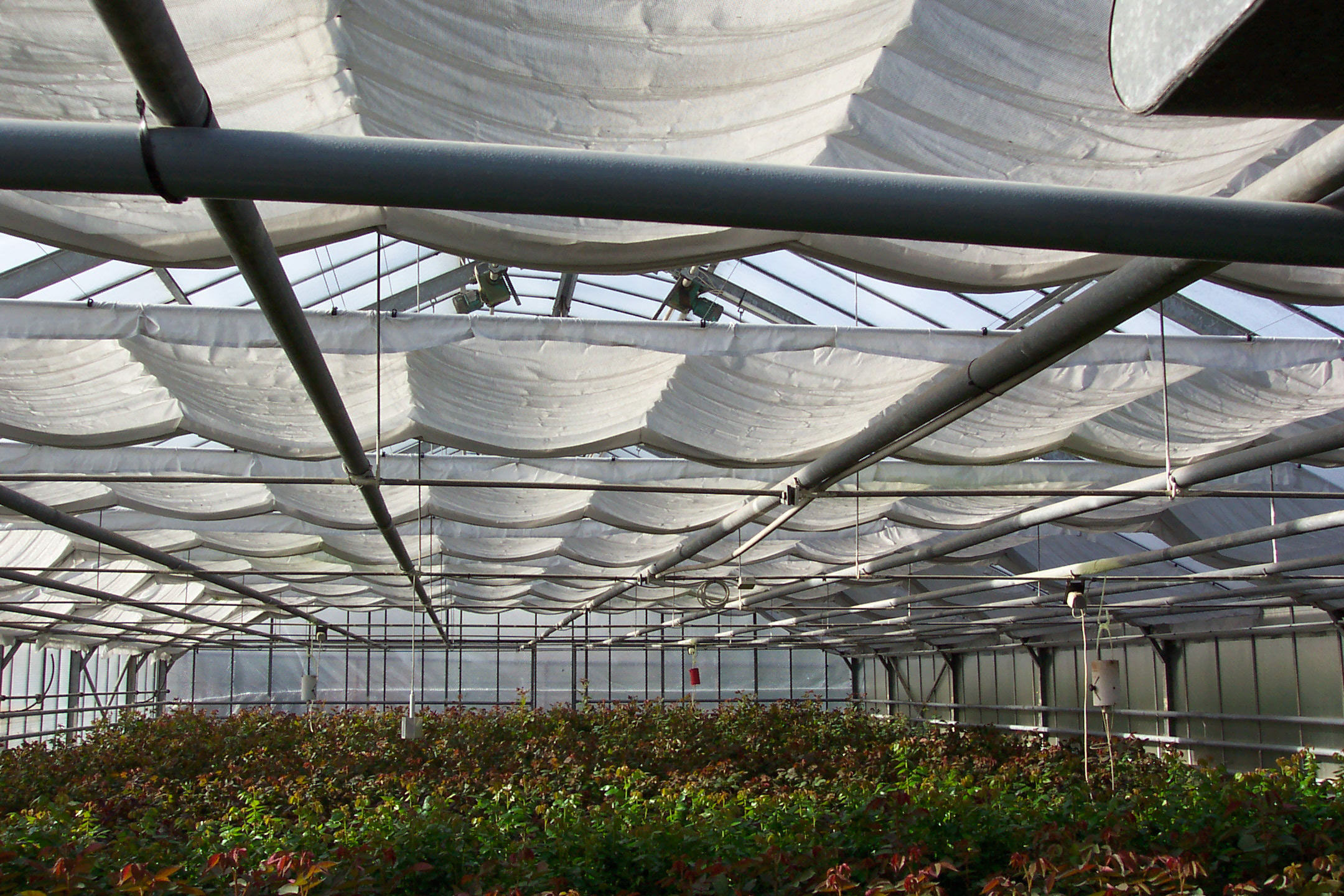 In den meisten Gewächshäusern war zu dieser Zeit dünner Stoff, so genanntes Schattiergewebe, mit einigem Abstand unter dem Glas angebracht. Bei kräftiger Sonneneinstrahlung zog man ihn über die Pflanzenbestände, um Überhitzung und Verbrennungen an den empfindlichen Pflanzen zu vermeiden. Nichts sprach dagegen, diese Schattierung auch zur Energieeinsparung zu nutzen. Denn die Glasfläche strahlte die Wärme auch ab und verursachte so den Wärmeverlust. Mit zugezogenem Gewebe ? so die Überlegung ? würde die Wärme während der Nachtstunden vom Glas ferngehalten und somit der Energieverbrauch sinken.
