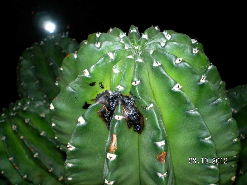 ich habe grade auf meinem schönen großen Kaktus (Königin der Nacht) mehrere schwarze Stellen entdeckt, die teilweise aussehen, als ob sie sich auflösen...Allerdings ist über den Stellen der Kaktus weitergewachsen, hat die Verletzung sozusagen "überbrückt"..