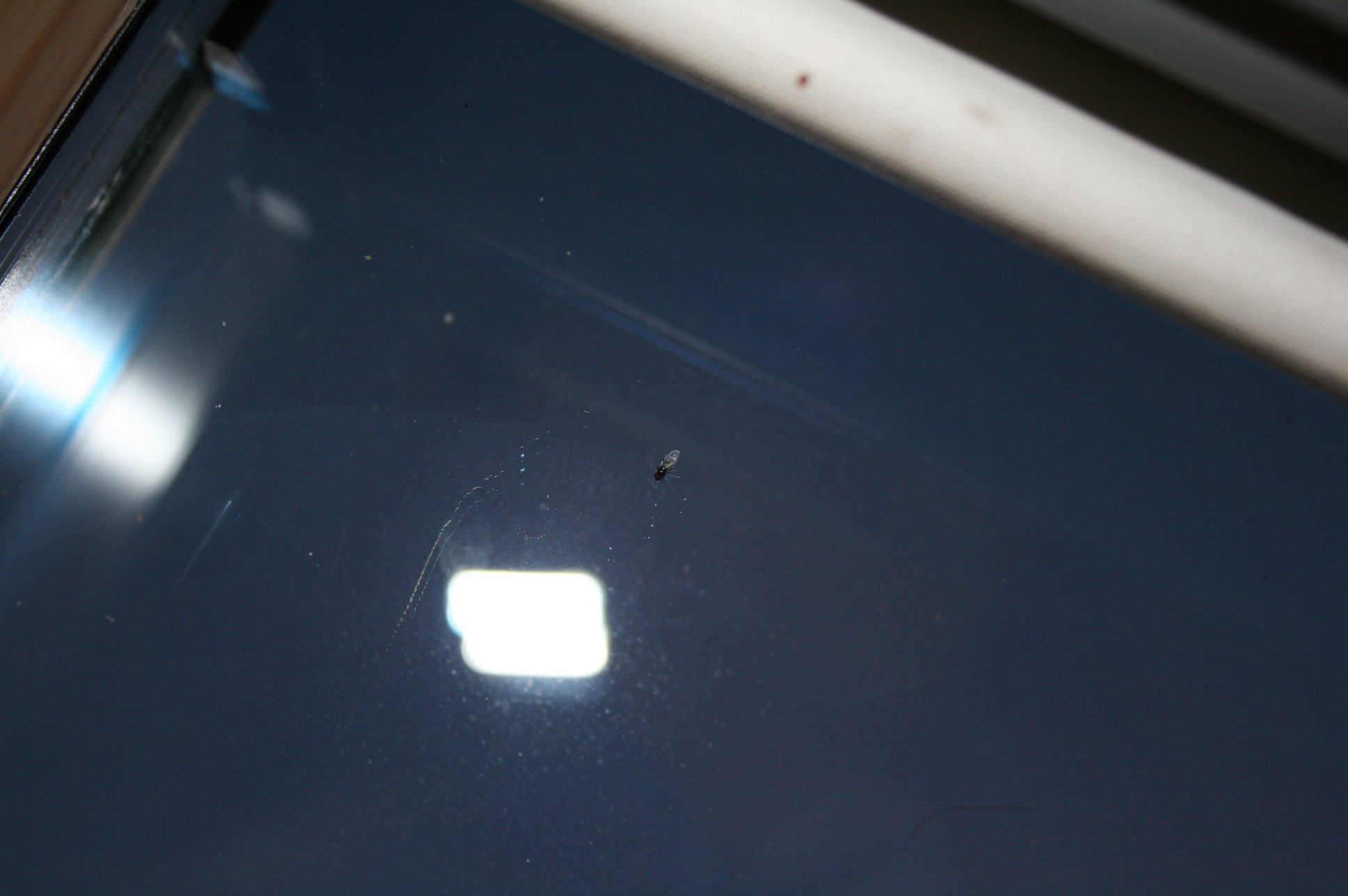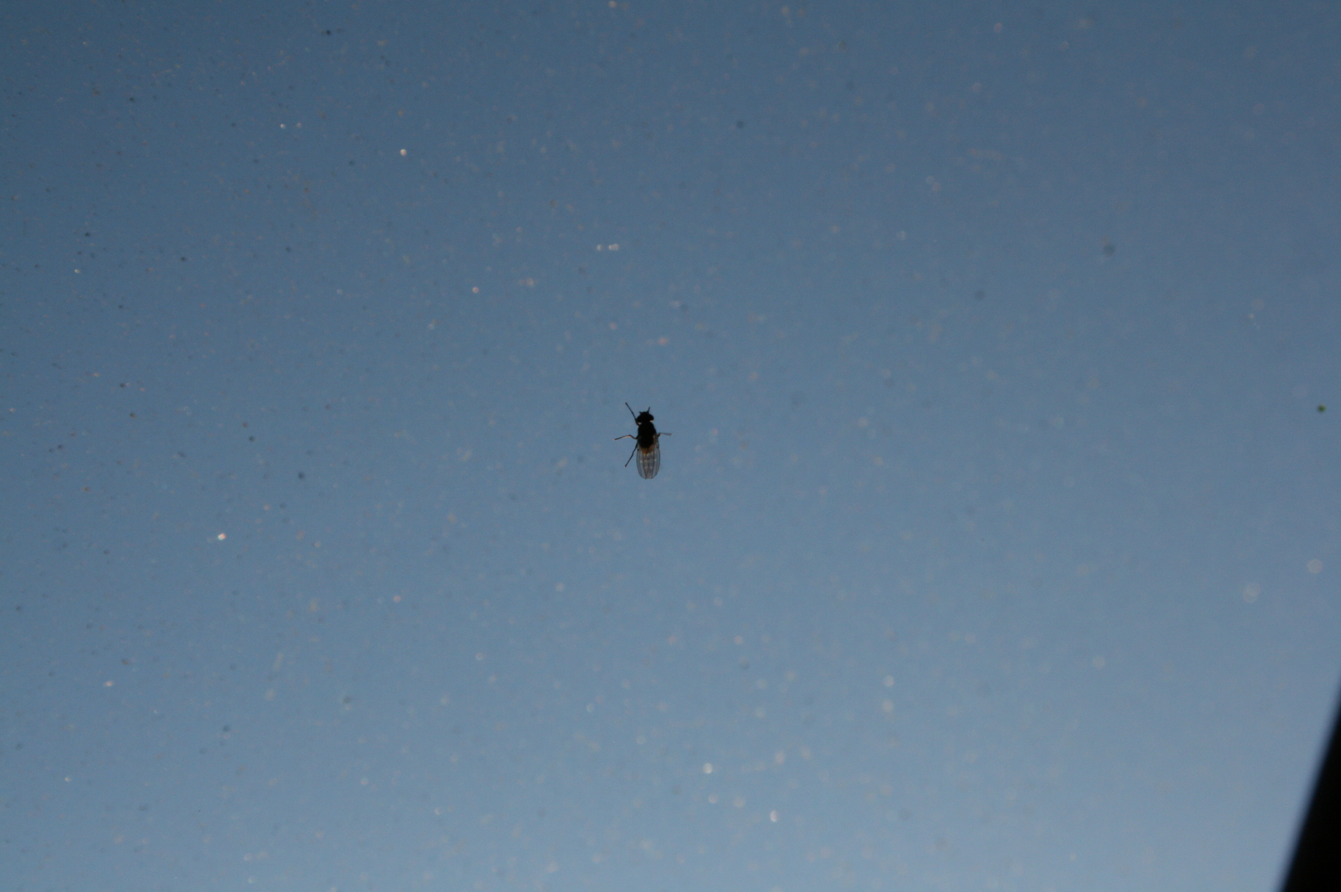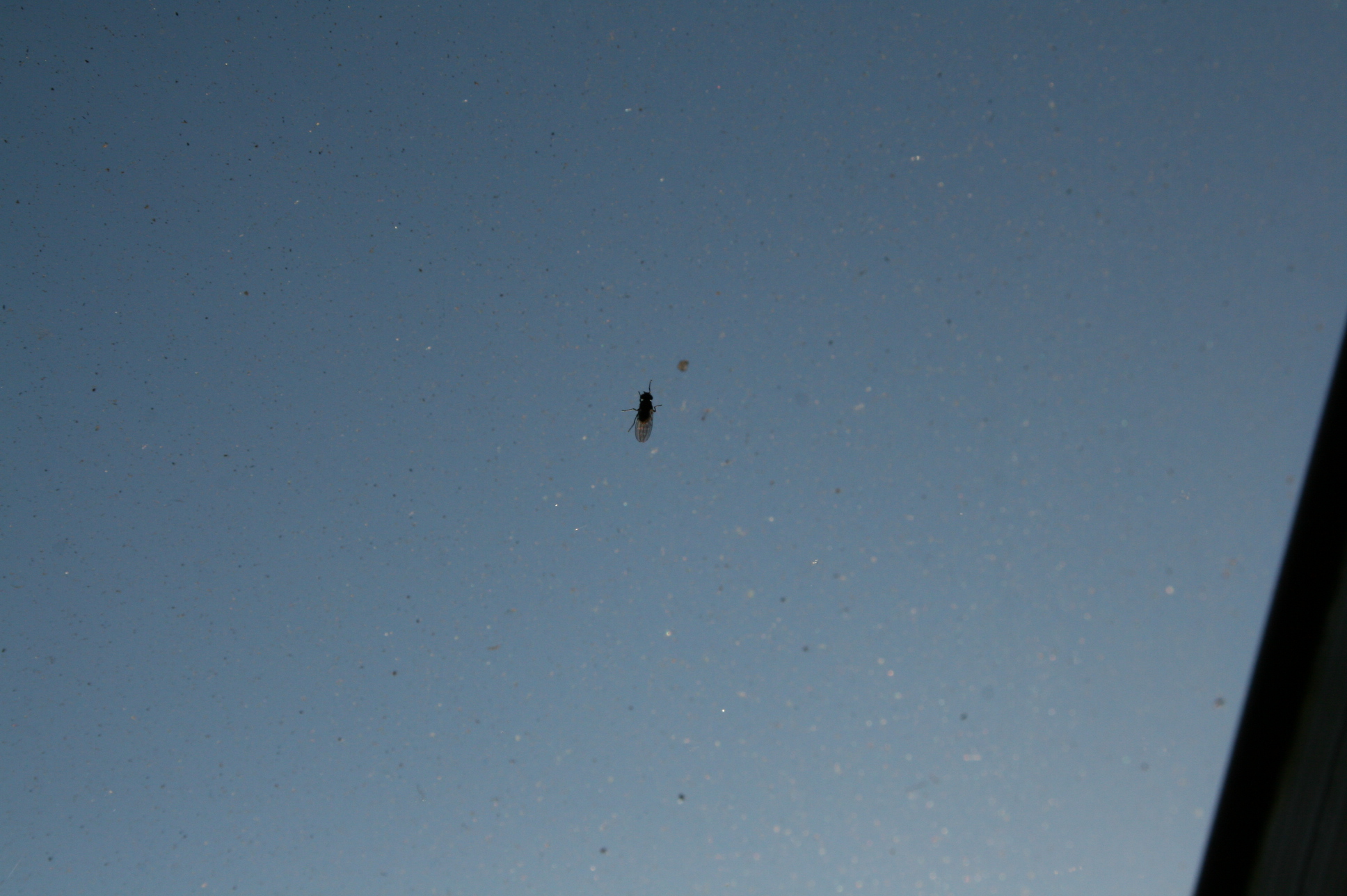 Also: ich habe an zwei Fenstern (getrennte Zimmer, getrennte Stockwerke) schwarze Fliegen entdeckt. Sie sind ein ganz bisschen größer / fülliger als Trauermücken, deutlich flinker (schwerer zu kriegen) und fliegen "normal" und nicht dieses TM-Geeiere.