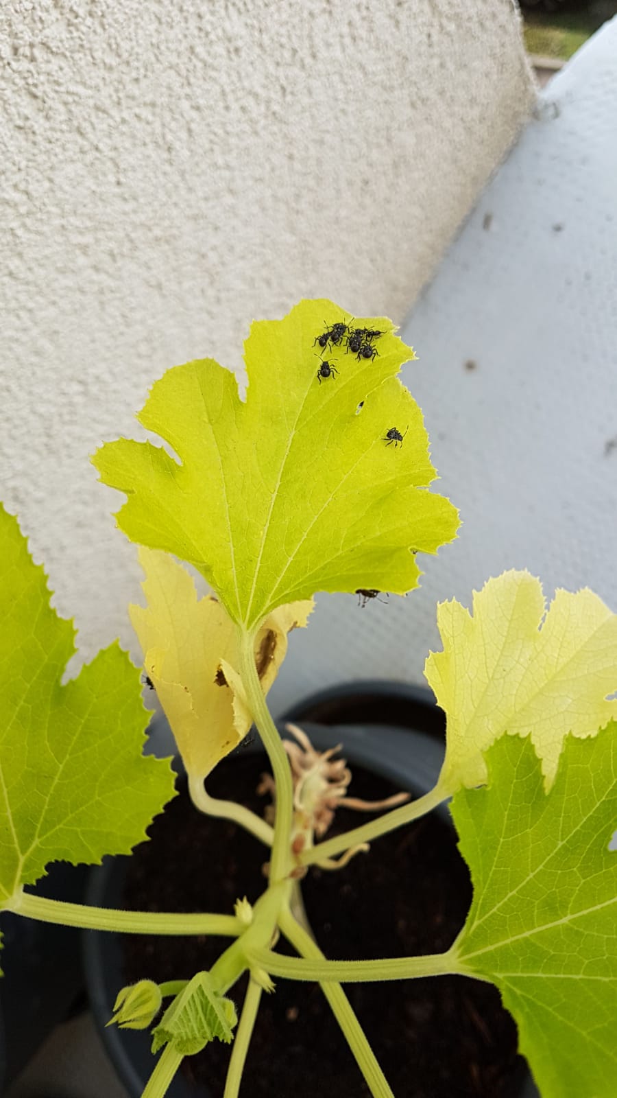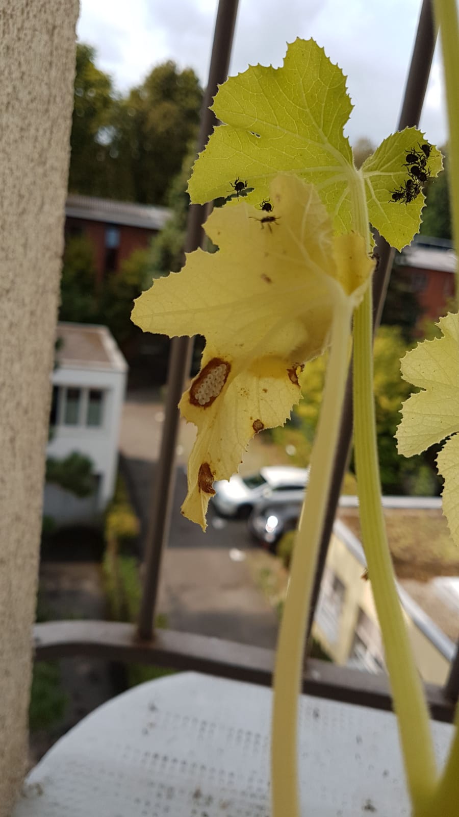 Ich habe heute früh auf meiner Balkonzuchinipflanze viele schwarze, eher grosse Käfer entdeckt. Auf der Unterseite der Blätter befinden sich weisse Eier. Nachdem ich mich schon ewig durch das Forum gesucht habe, kann ich sie aber keinem Schädling wirklich zuordnen - sie sind eher zu gross für Blattläuse und tagaktiv. Habt ihr eine Idee, was das sein kann? Die Zuchini kränkelt schon länger - ich mache mir aber Sorgen, dass die Schädlinge auf die anderen Pflanzen (z.B. Paprika) übersiedeln könnten.