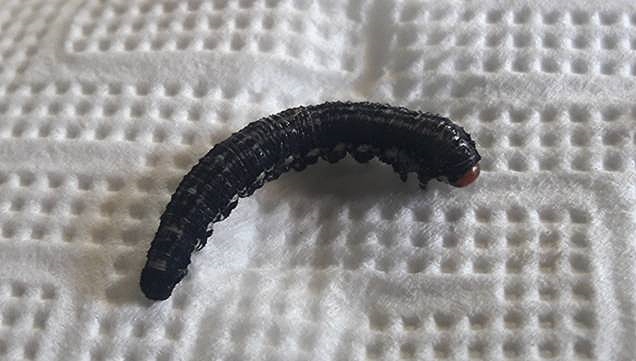 Raupen an KieferLeider wird auch dort nichts weiter gesagt, zwecks korrekter Namenbezeichnung; es werden nur die gängigsten Schmetterlingsraupenarten aufgezählt, von denen aber keine eine ähnlich aussehende Raupe aufweist (meist sind sie grünlich, bräunlich oder gräulich, mit Haaren oder Borsten besetzt).