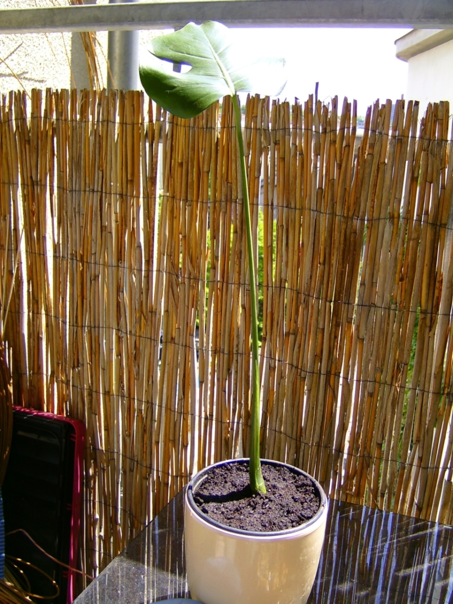Die Monstera besteht nur aus einem Blatt. Es ist auch augenscheinlich gesund, aber es geschieht nix.