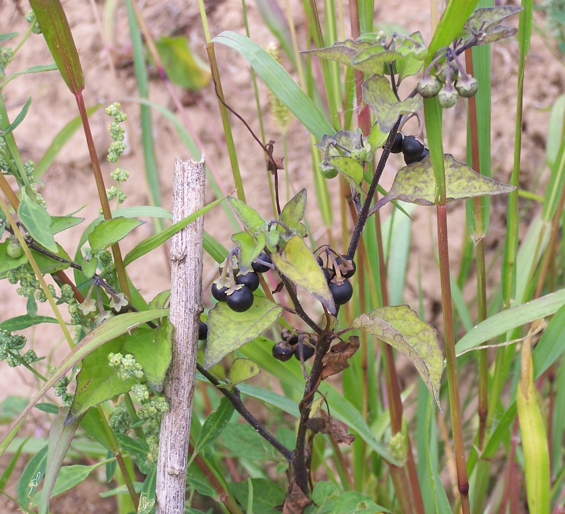 wenn Du es mit der Namensgebung nicht so genau nimmst, kann man Solanum nigrum dazu sagen. Aber mit dem Kürzel "agg." dahinter, als Solanum nigrum agg. Das bedeutet Aggregat bzw. Solanum nigrum ist ein Formenkreis mehrer verwandter Arten. In Deutschland besteht dieses Aggregat aus 5 Arten: S. chenopodioides, S. decipiens, S. villosum, S. alatum und S. nigrum s.str. (im engeren Sinne). Davon sind S. villosum und S. alatum jedoch nicht schwarzfrüchtig.