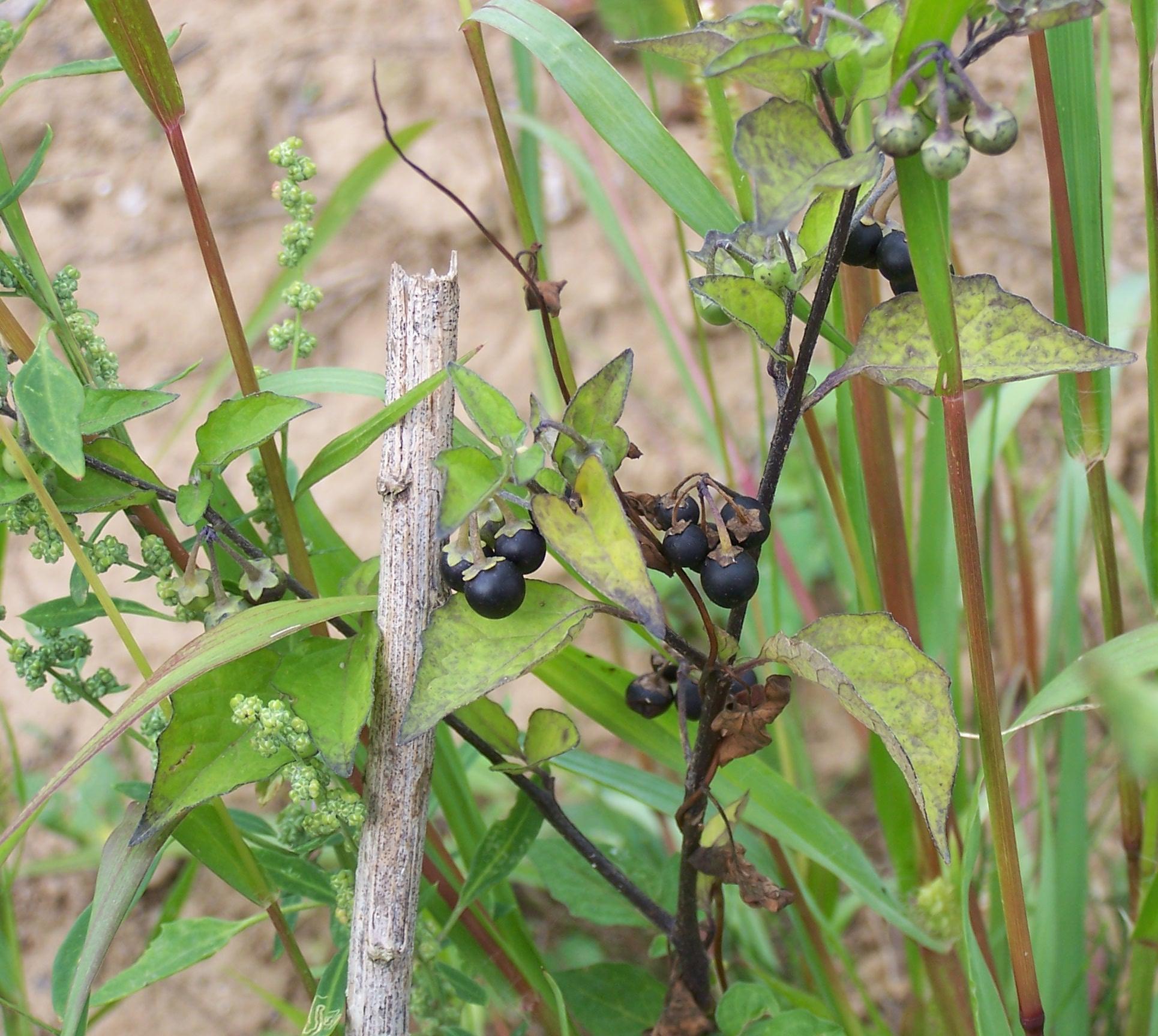 wenn Du es mit der Namensgebung nicht so genau nimmst, kann man Solanum nigrum dazu sagen. Aber mit dem Kürzel "agg." dahinter, als Solanum nigrum agg. Das bedeutet Aggregat bzw. Solanum nigrum ist ein Formenkreis mehrer verwandter Arten. In Deutschland besteht dieses Aggregat aus 5 Arten: S. chenopodioides, S. decipiens, S. villosum, S. alatum und S. nigrum s.str. (im engeren Sinne). Davon sind S. villosum und S. alatum jedoch nicht schwarzfrüchtig.