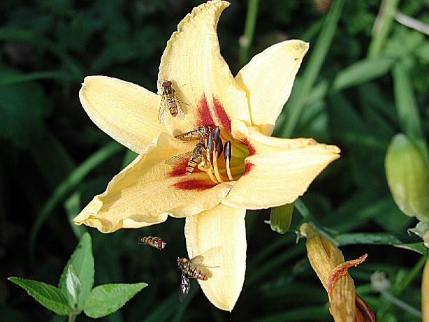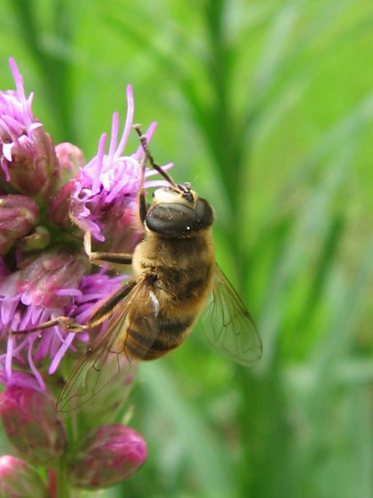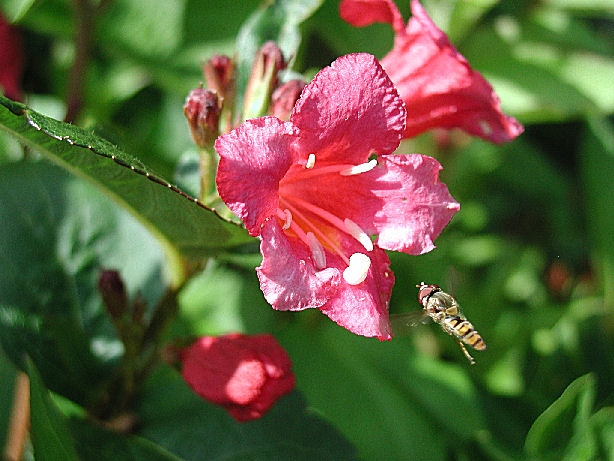Ich guck, und : nix Wespe, Schwebfliege ... leider is nur unsere Digicam net gut genug, die Tierchen aufzunehmen ... ich wünsch mir zu Weihnachten eine Spiegelreflex ... leider werd' ich in Zukunft mit meiner alten Canon keine Bilder mehr schießen können, weil die Produktion der Filmrollen eingestellt wird