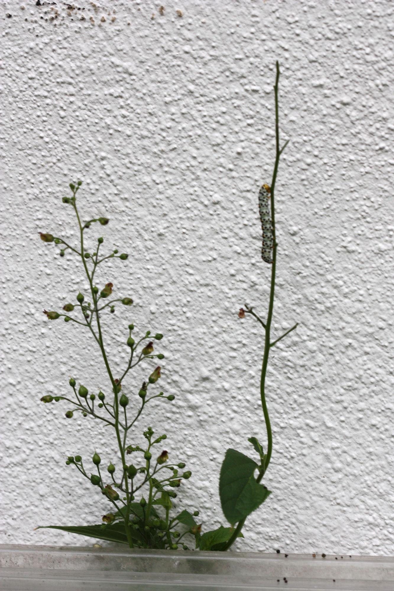 Ist mit dem einzelnen, schlechten Foto nicht mit aller Sicherheit zu sagen, aber ich denke schon, dass deine Bestimmung stimmt. Sicherheit bei der Art könnten gute Fotos der Blüten, Blätter und Stengel liefern. Zu Scrophularia passt aber auf jeden Fall der Braunwurz-Mönch (Cucullia scrophulariae).