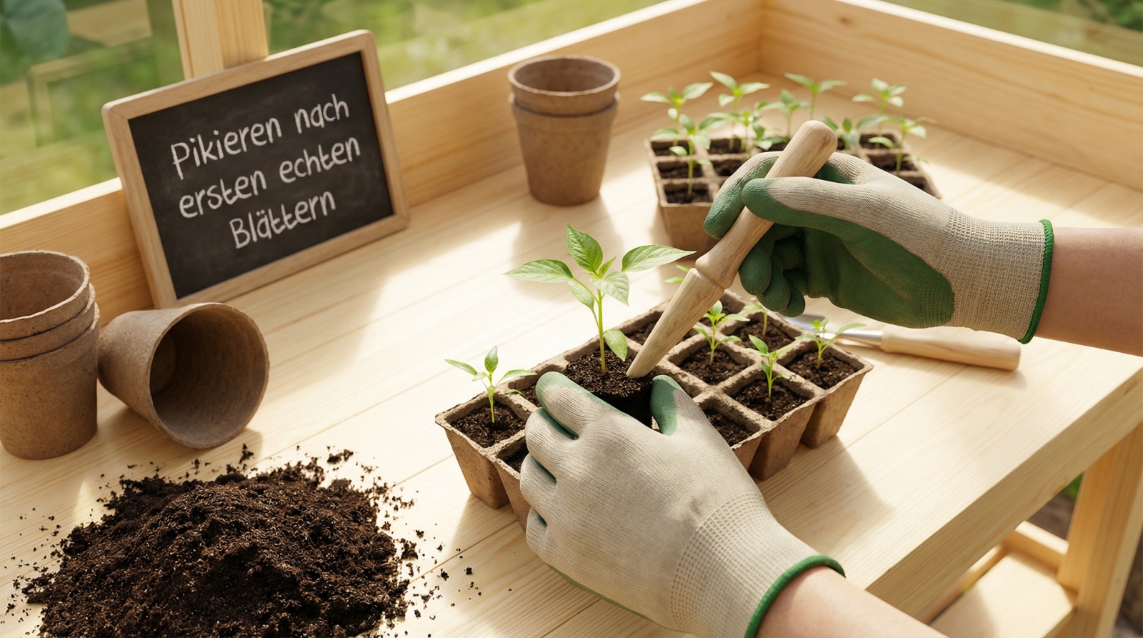 Was bedeutet "pikieren" und warum ist es wichtig? Beim Pikieren werden zu dicht gesäte Keimlinge vorsichtig getrennt und in einzelne Töpfe verpflanzt. Dieser Schritt ist entscheidend, da er den jungen Pflanzen mehr Platz, Licht und Nährstoffe bietet. Das Ergebnis sind kräftigere, gesündere Setzlinge, die besser auf das Auspflanzen ins Freiland vorbereitet sind.