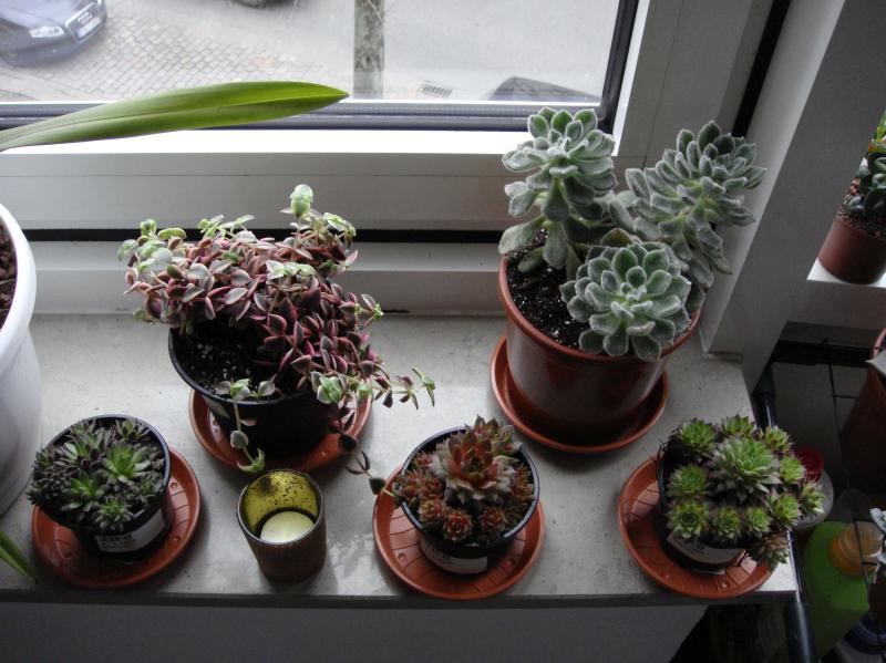 Die Sempervivien sind draußen, die hatte ich nur für die Fotos da hin gestellt. Ich möchte damit den Laubengang ausstatten und sie dafür auf Steine oder Wurzeln pflanzen. Auch die anderen Sukkis bekommen ein schönes Plätzchen dort, sobald das Wetter stimmt.