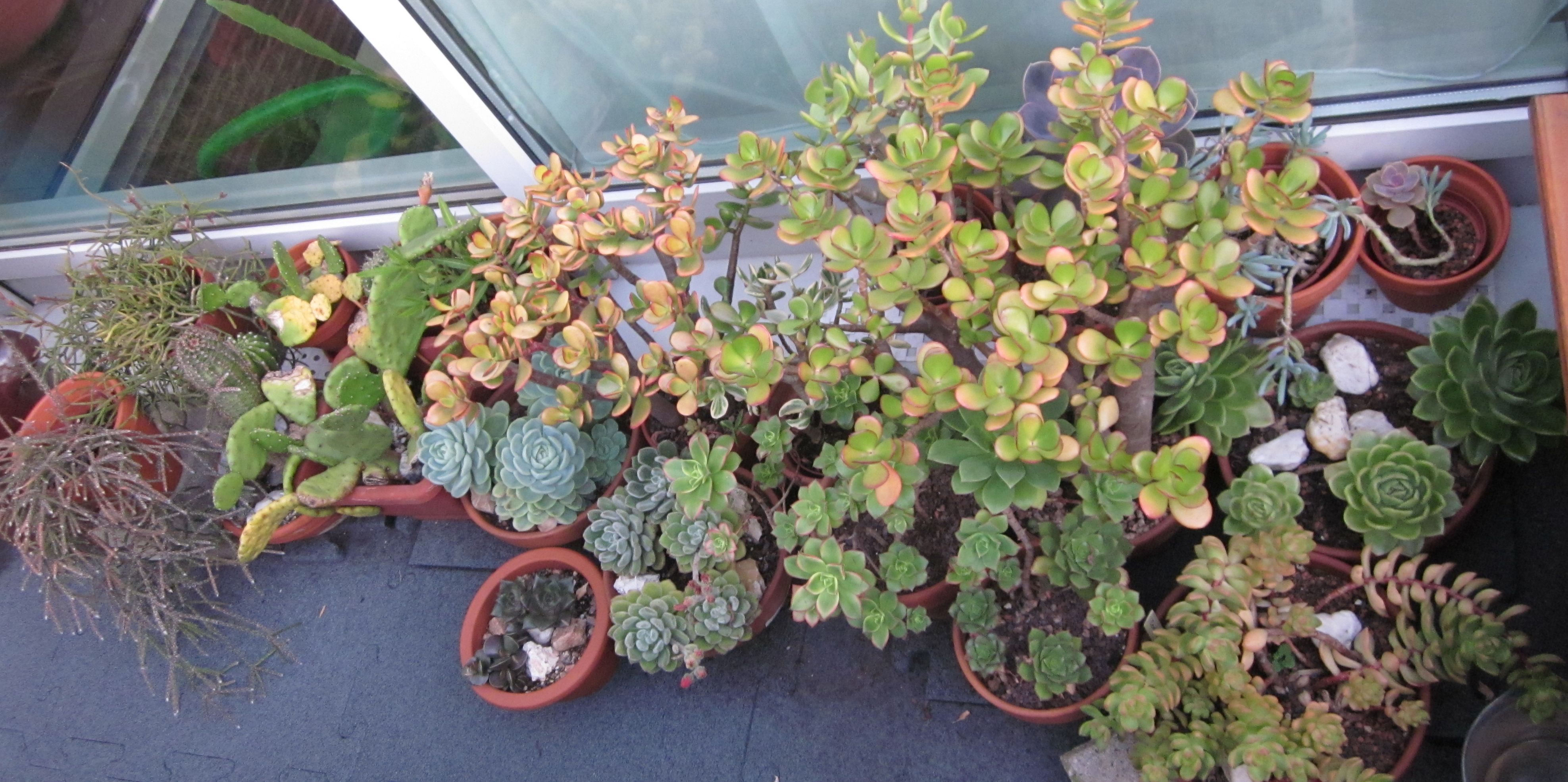 Seit dem Umzug stehen sie größtenteils nicht mehr überdacht- was bedeutet, dass ich dieses Jahr schon öfter Töpfe leeren musste, damit sie nicht im Wasser stehen. Außerdem haben ein paar Hagelschäden (schwarze Flecken)...