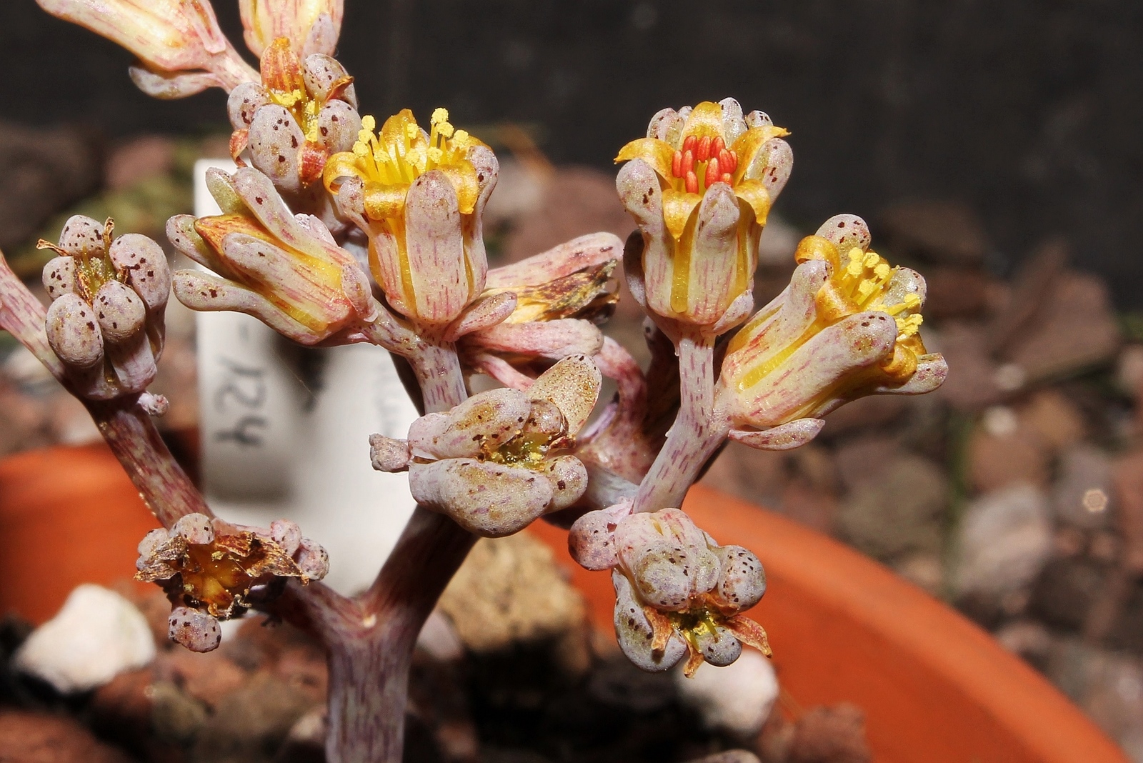 Endlich habe ich auch mal vernünftige Bilder von den Blüten meines Adromischus cristatus machen können. Mit der neuen Kamera ist doch viele besser.