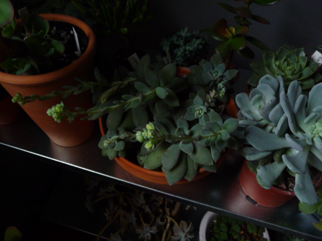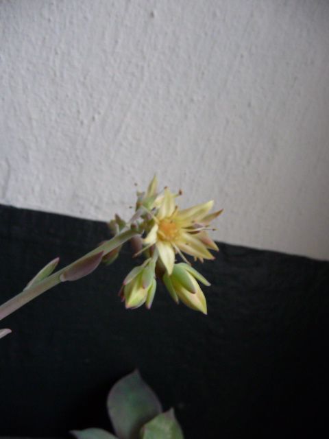 Eine Pflanze bei der mir damals die Etiketten durcheinander geraten sind, ist diese Echeveria. Sie hat noch den Namen E. viridissima, hat sich aber als Echeveria skinneri herausgestellt. Eine von den großblütigen, strauchigen Echeverien aus Oaxaca. Die Arten aus dieser Gruppe gehen sehr stark ineinander über und man könnte auch alle evtl. als eine Art mit vielen Unterarten zusammenfassen. Da ich aber kein Botaniker bin, lasse ich es lieber....