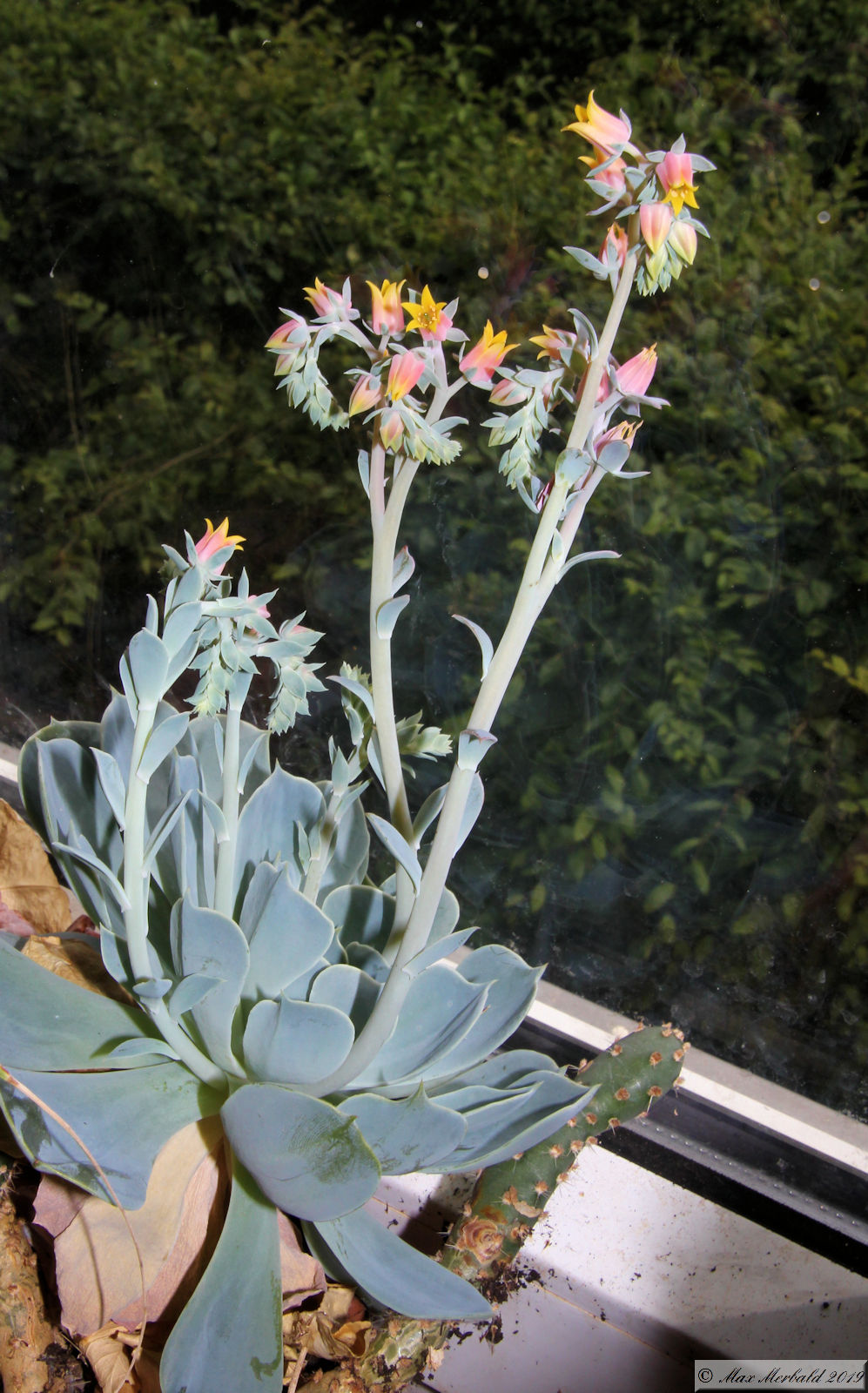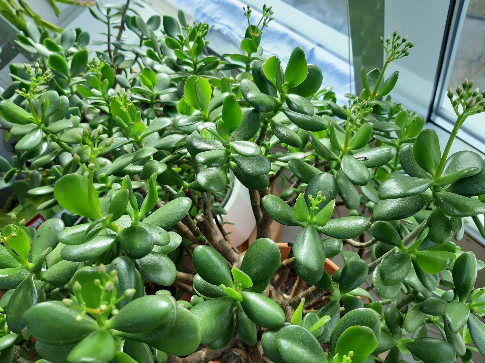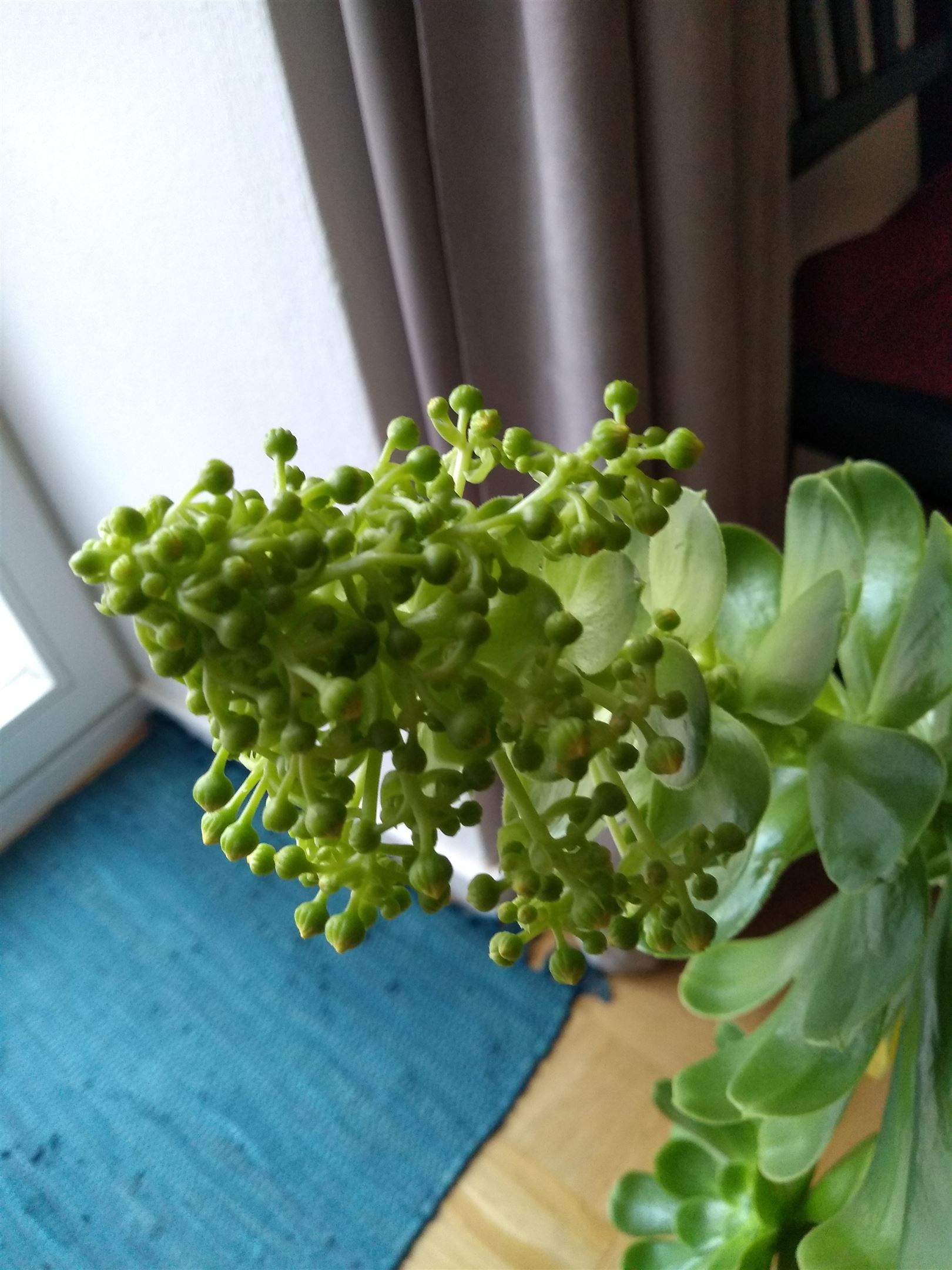 meine Crassula ovata ist natürlich längst verblüht, aber dafür will jetzt meine Echeveria blühen!