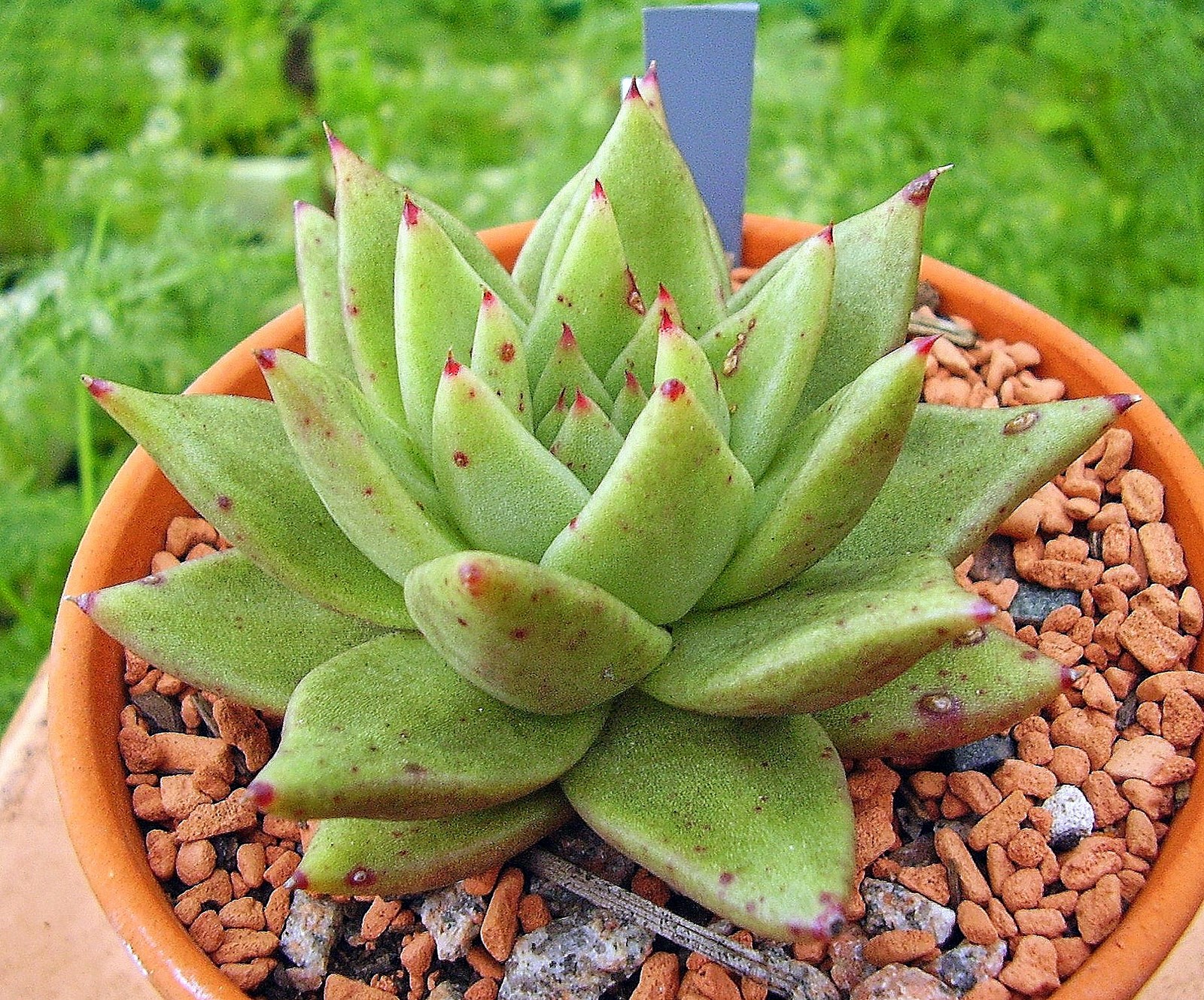 Echeveria agavoides ´Corderoyi´ und ihre Cristate, nur eine von vielen E.-agavoides-Formen.