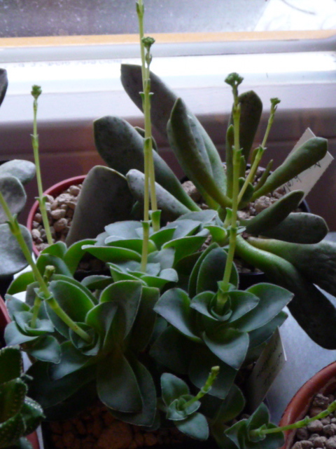 Endlich habe ich auch mal vernünftige Bilder von den Blüten meines Adromischus cristatus machen können. Mit der neuen Kamera ist doch viele besser.