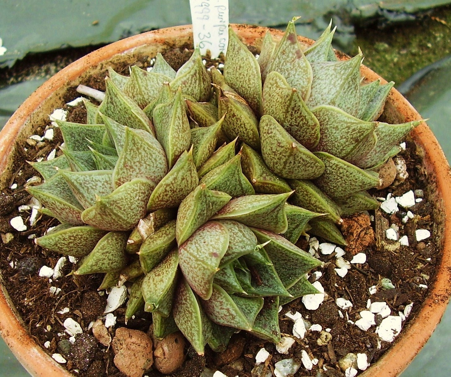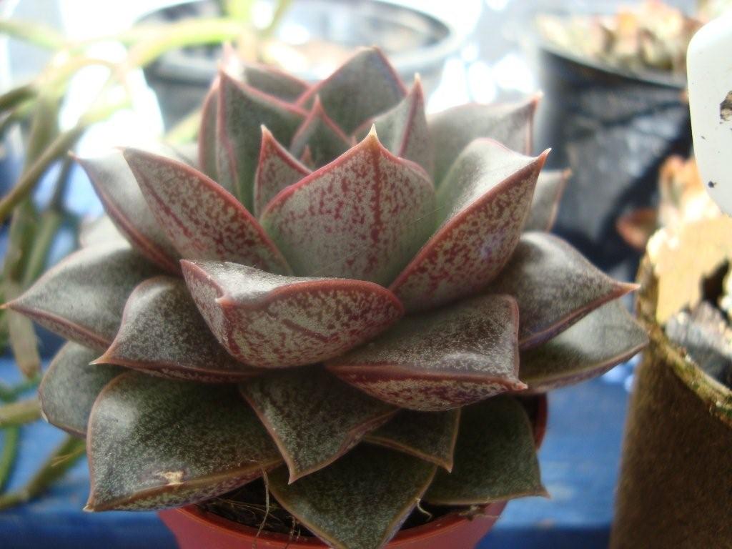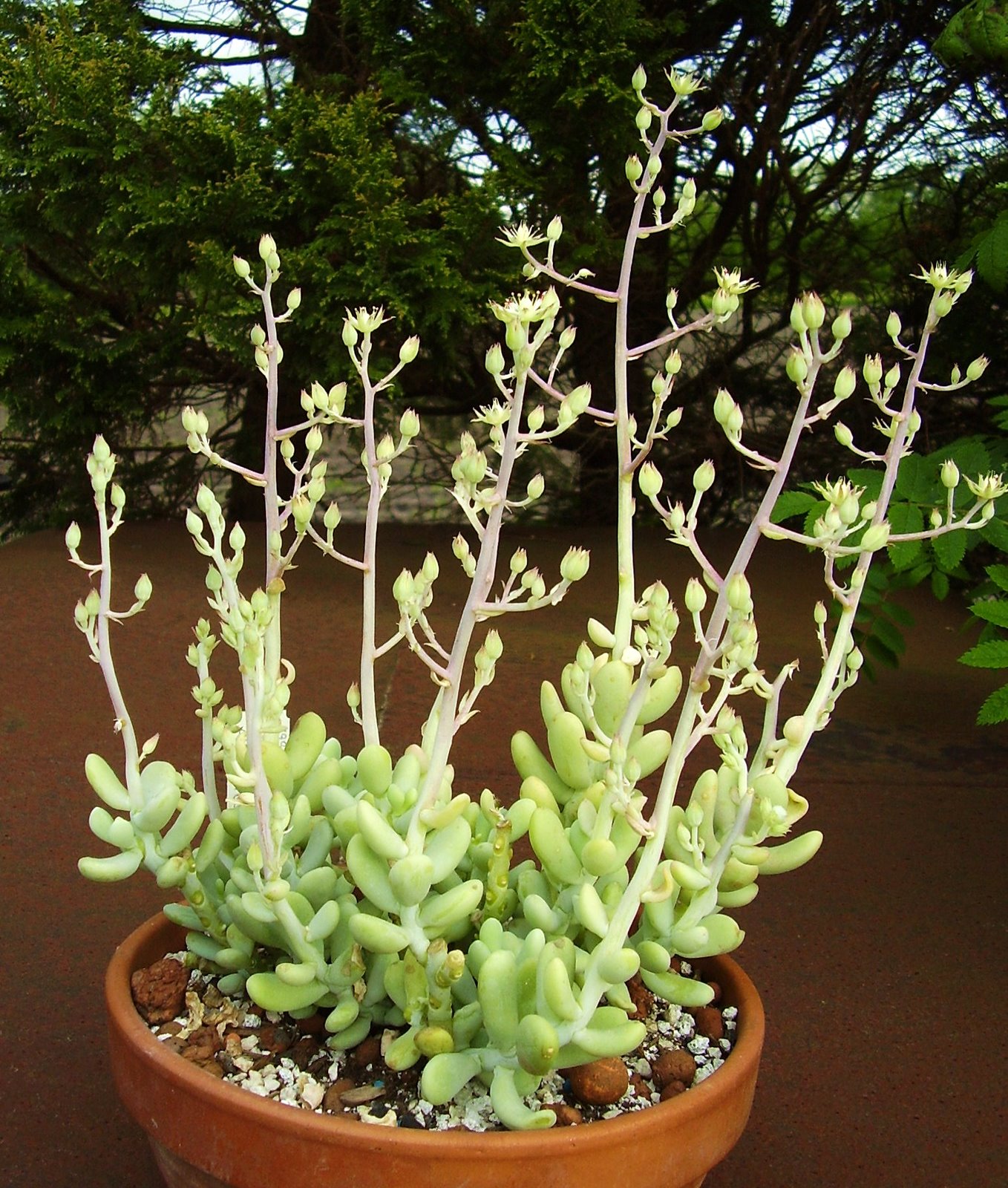 Um zu zeigen, das ich nicht nur Echeverien und so pflege auch mal ein kleiner Kanare. Den 3 cm langen Steckling habe ich im Januar 2005 aus einer Mauer im Teno-Gebirge auf Teneriffa genommen. Jetzt ist sie zu dieser schönen Pflanze herangewachsen: