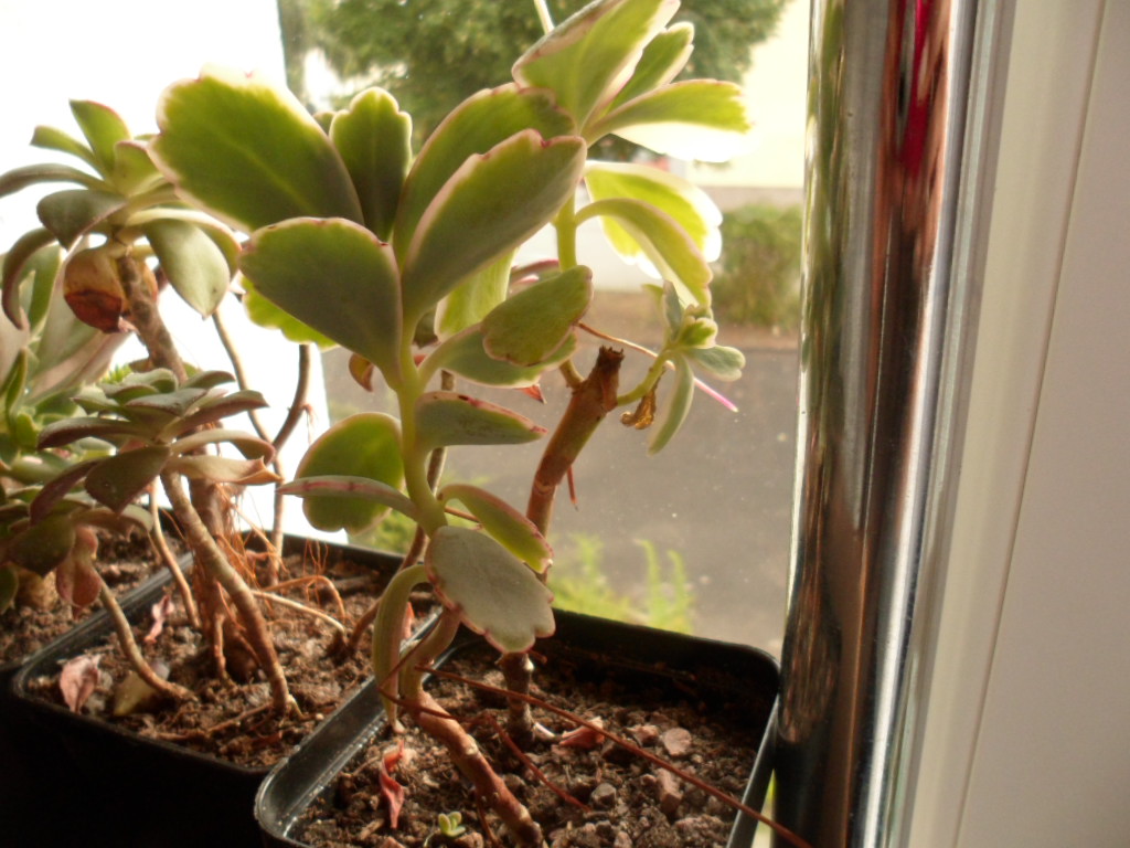 Dann mal eine dunklere, von der ich im Winter 2011 zwei übrig gebliebene Blätter bewurzelt habe. Diese hatte auch einen schönen Stamm, leider stand sie dann längere Zeit im Regen und verfaulte. So sehen die Blätter nun heute aus. Was das genau für eine ist, weiß ich auch nicht.