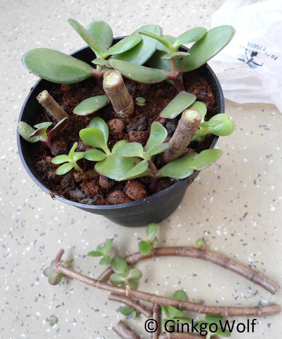 Nr. 3 und 4 Crassula ovata - Ex - Stecklinge von einer Pflanze die meiner Mutter gehört. Früher waren es sogar 3, eine habe ich allerdings bereits verschenkt. Ob ich beide Ovatas behalte, einen verschenke oder einen zum Bonsai umgestalte und den anderen groß werden lasse, weiß ich noch nicht.