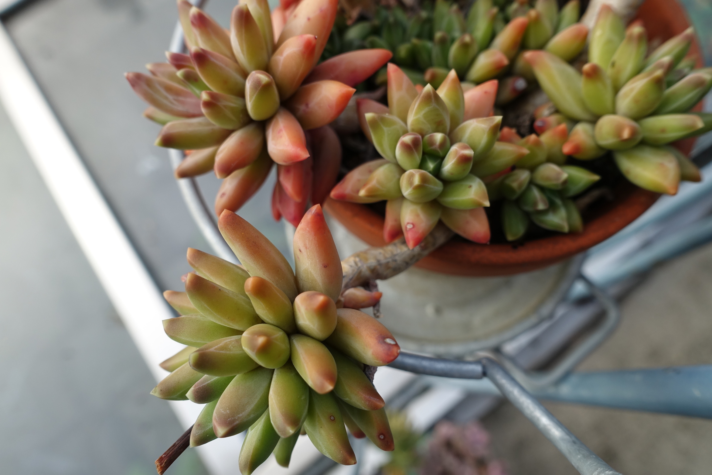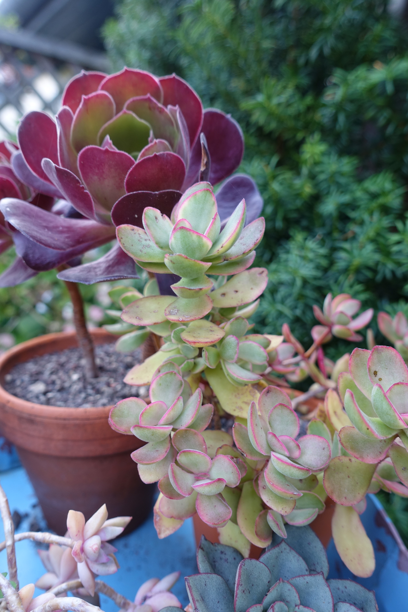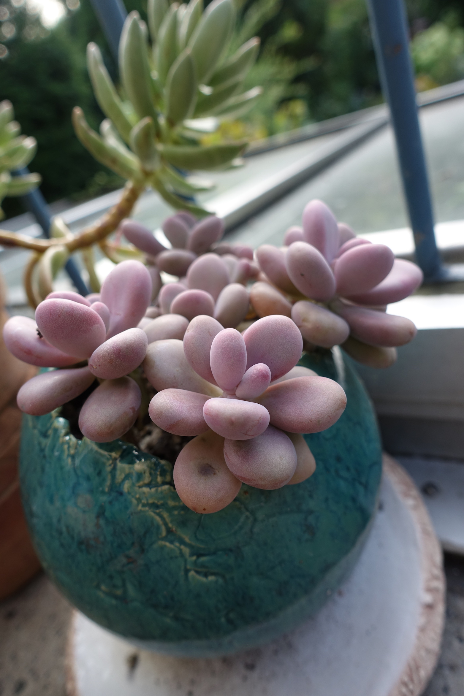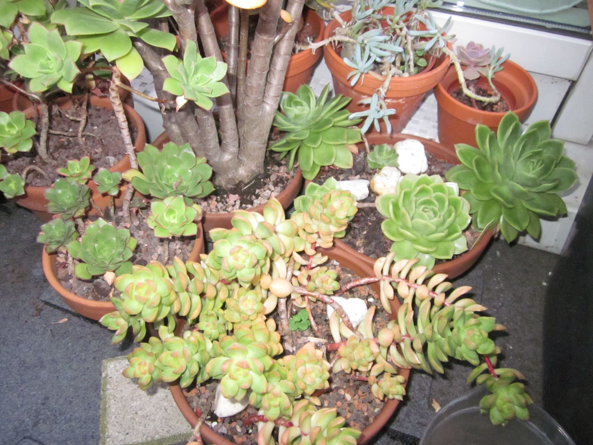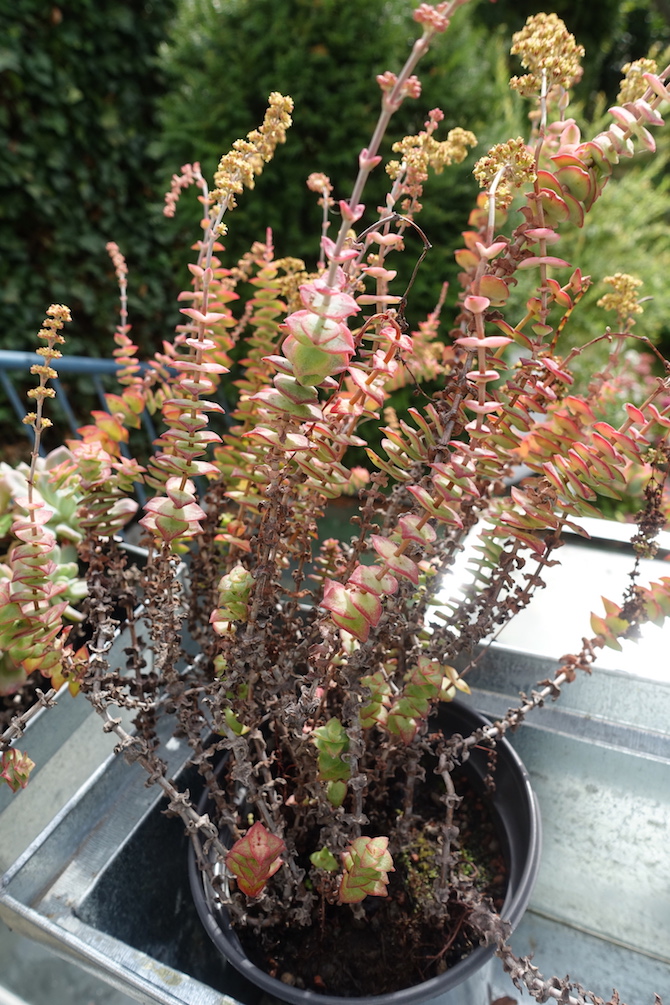 Seit dem Umzug stehen sie größtenteils nicht mehr überdacht- was bedeutet, dass ich dieses Jahr schon öfter Töpfe leeren musste, damit sie nicht im Wasser stehen. Außerdem haben ein paar Hagelschäden (schwarze Flecken)...