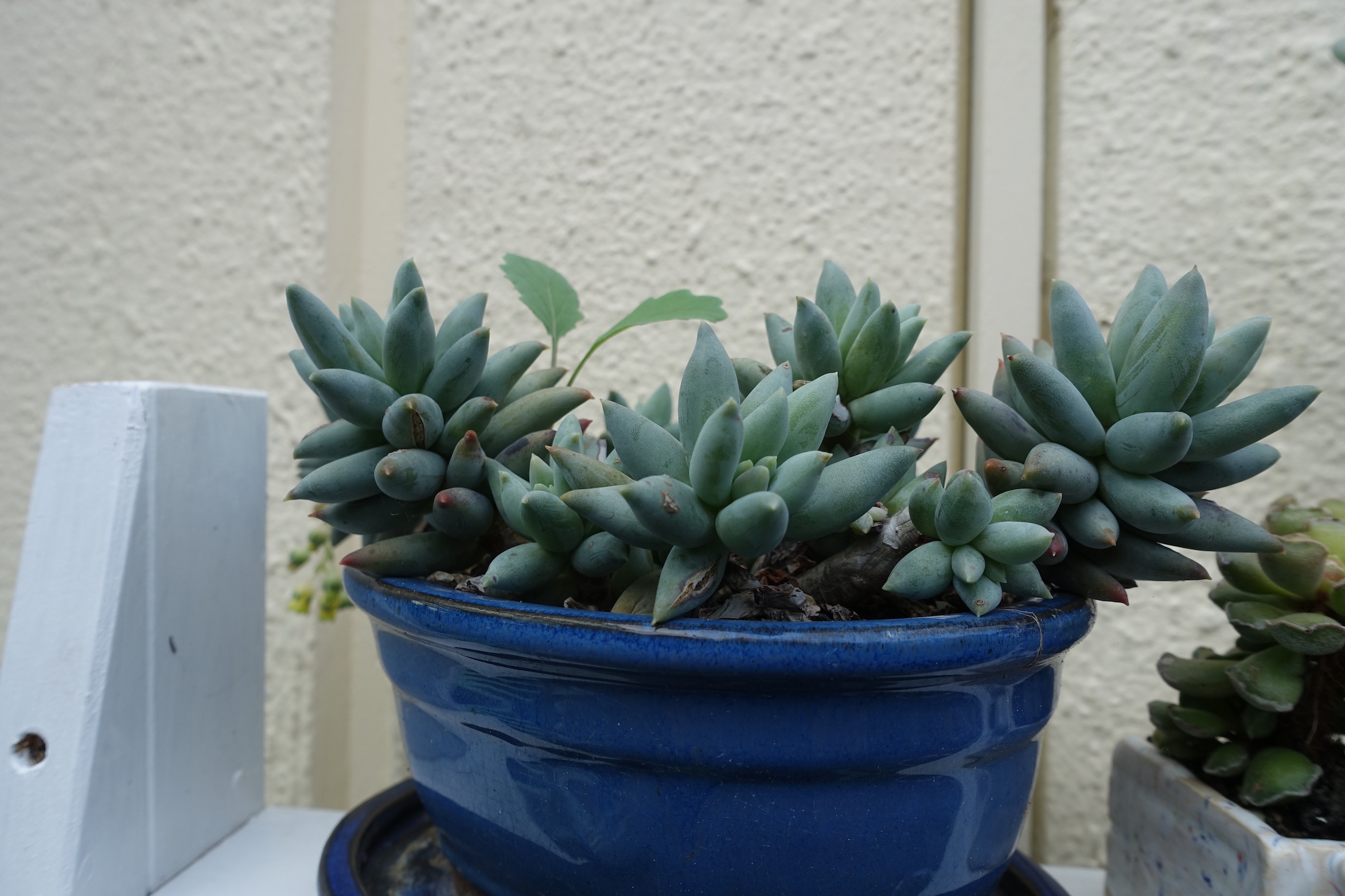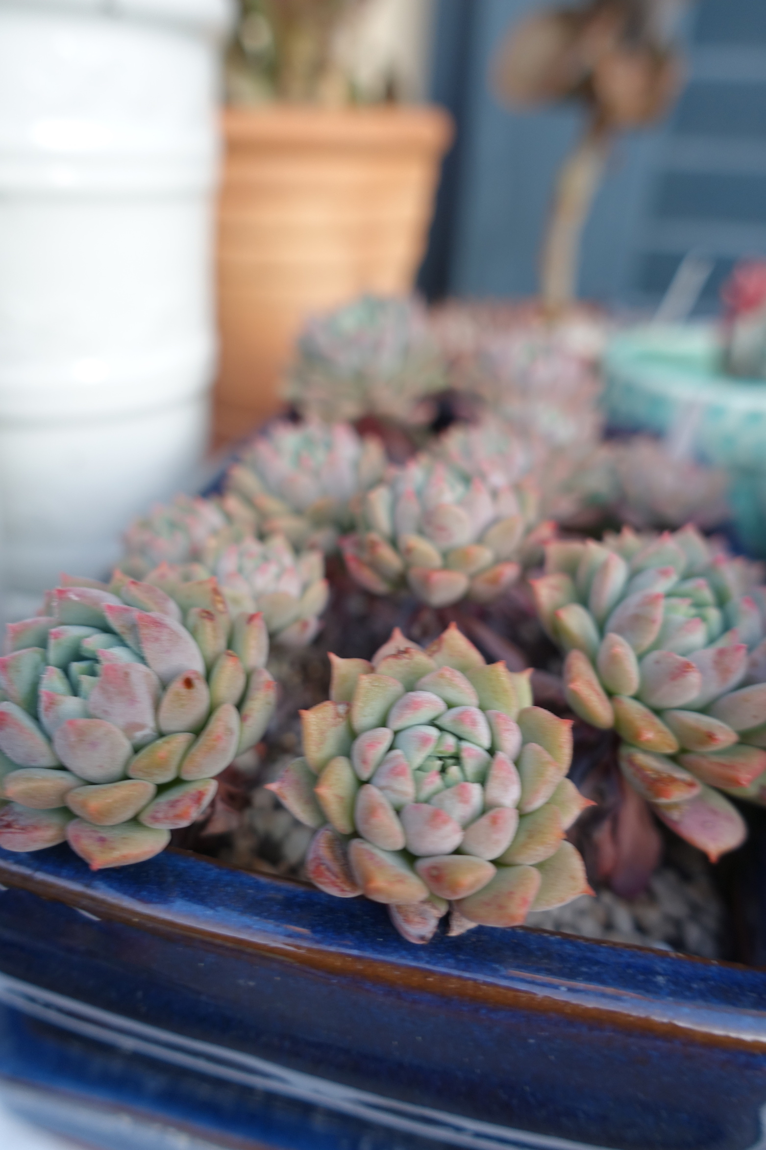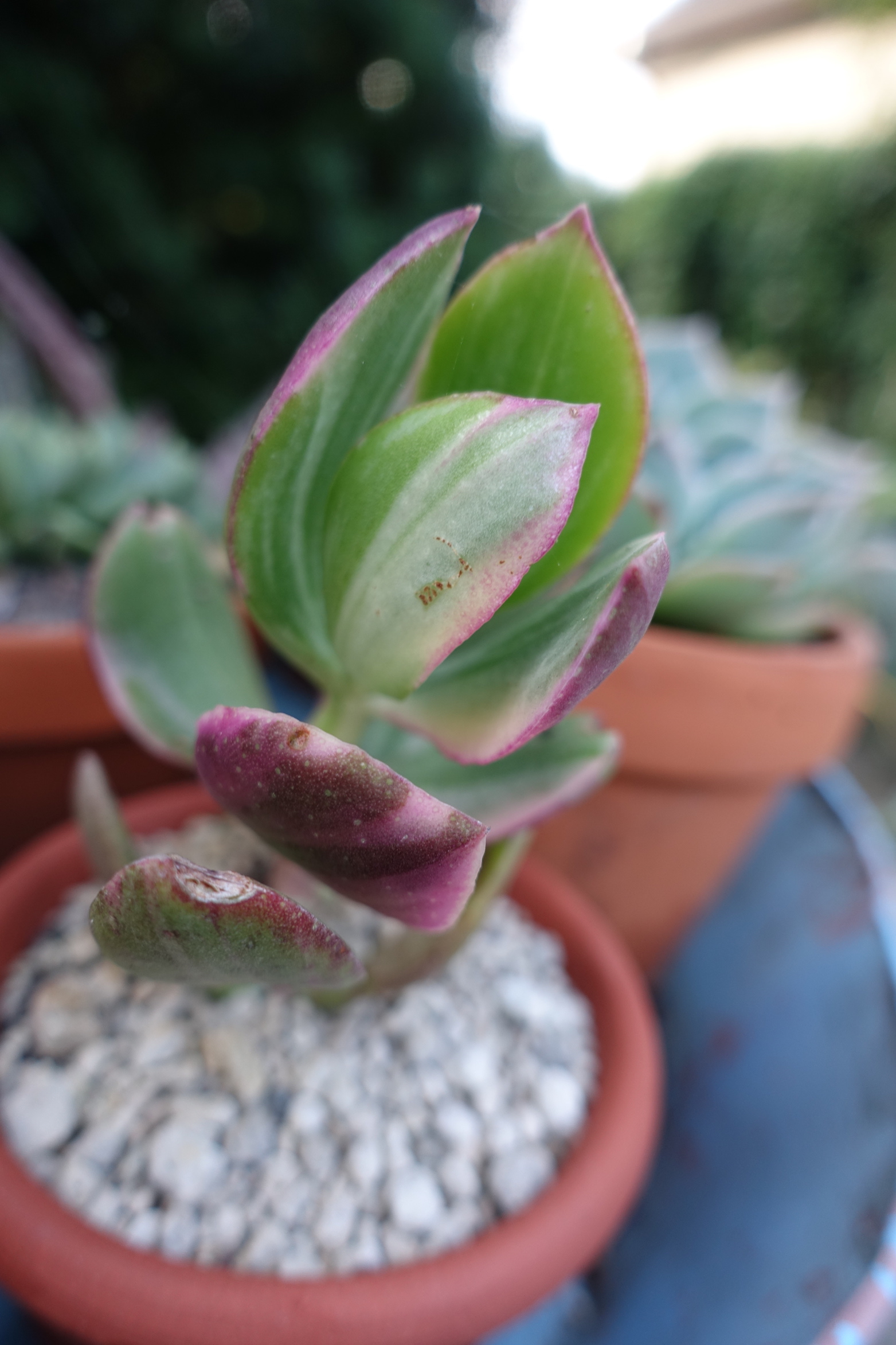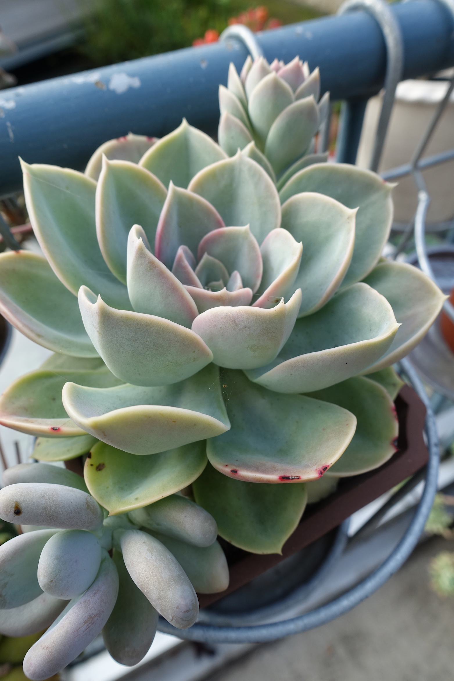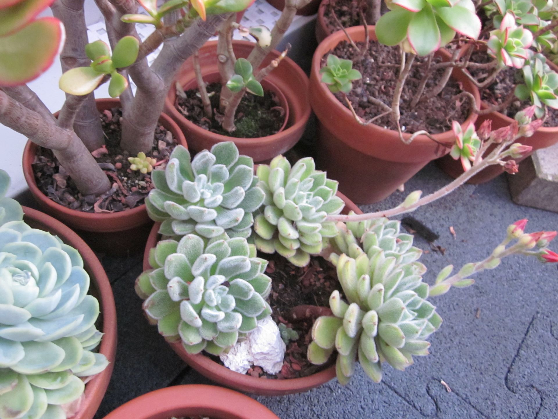 Seit dem Umzug stehen sie größtenteils nicht mehr überdacht- was bedeutet, dass ich dieses Jahr schon öfter Töpfe leeren musste, damit sie nicht im Wasser stehen. Außerdem haben ein paar Hagelschäden (schwarze Flecken)...