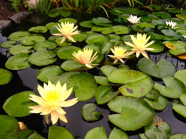 Ich habe die meisten Seerosen in Kübeln stehen, Sommer wie Winter und es scheint ihnen gut zu gefallen. Was aber bei zu flach gesetzten Seerosen passiert, sie schieben ihre Blätter zu kleinen Türmen auf wenn es zu eng wird. Da kann man aber regielierend eingreifen